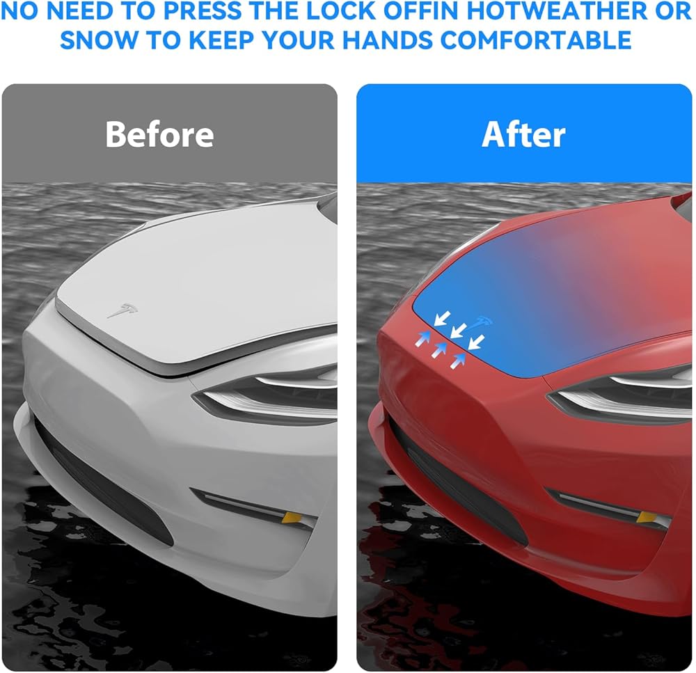 Hands-Free Convenience : Power frunk soft close lock is designed with an electric suction closure function, it is easy to operate, just gently push the front luggage cover to the semi-closed state, and the luggage compartment will be automatically suctioned and locked. Frunk electric suction lock bid farewell to dirty hands with our hands-free suction closure feature, allowing the front cover to close automatically, even in snowy weather conditions, enhancing your overall user experience.
