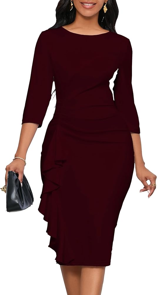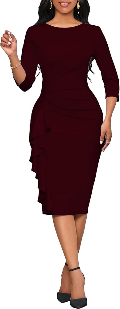 Material:95%Polyester+ 5%Spandex. Women fitted church midi pencil dresses is flattering and soft, with a vibrant color. The stretchy fabric allows for movement without feeling tight.