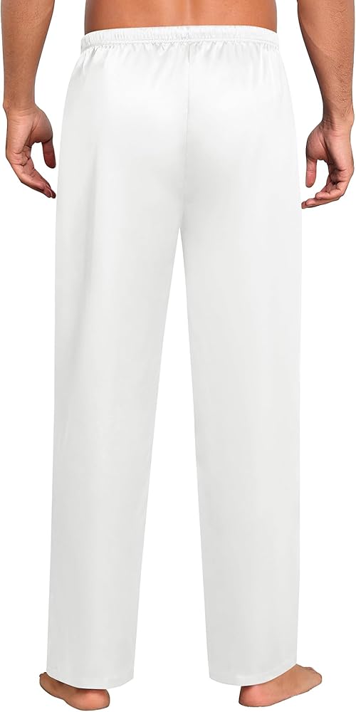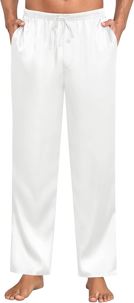 PERFECT DESIGN: These satin pj pants feature an ELASTIC WAISTBAND with a DRAWSTRING to help you adjust freely for maximum loose freedom and fit all body types. The BUTTON FLY brings you more quality convenience and experience. The 2 SIDE POCKETS design helps you store your phone and other essentials.