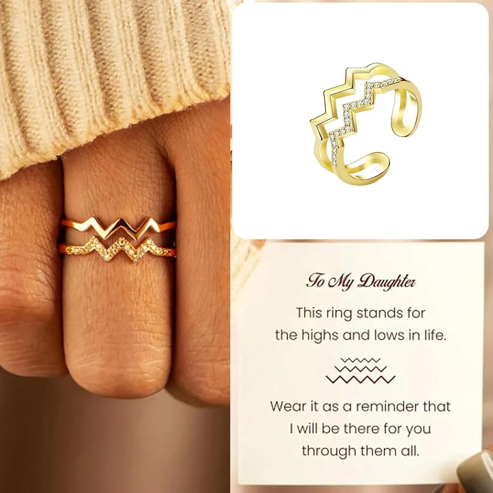 HIGHS AND LOWS RING FOR DAUGHTER : These stylish double wave rings is made of high quality anti-sensitive material which do no harm to your skin, lightweight and durable, carrying no extra burdens on your finger. Easy to match costumes.