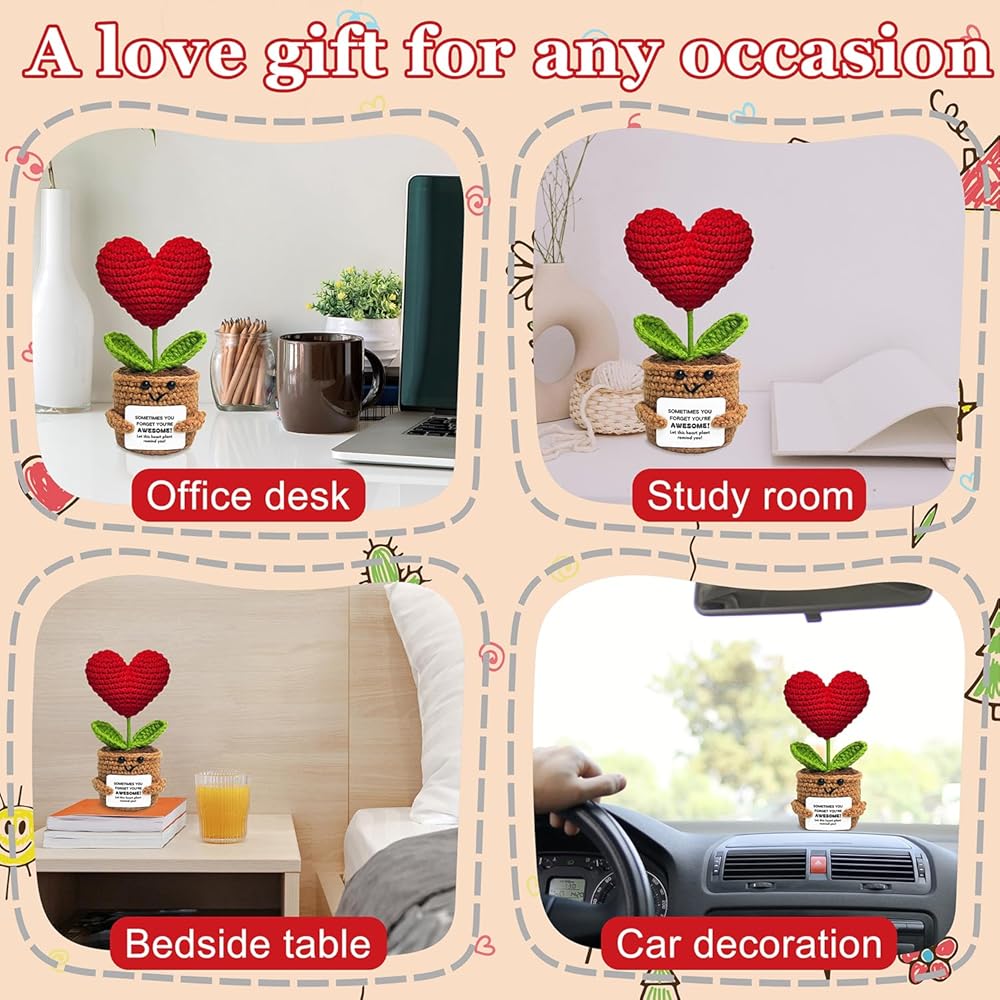 Essential for Festivals: Our positive crochet heart flower is a perfect small gift for friends, coworker, bestie, sister, parents and neighbors! It can not only provide you with emotional support, but also exudes the festive charm, making it an ideal present to show your care and love during this special holiday