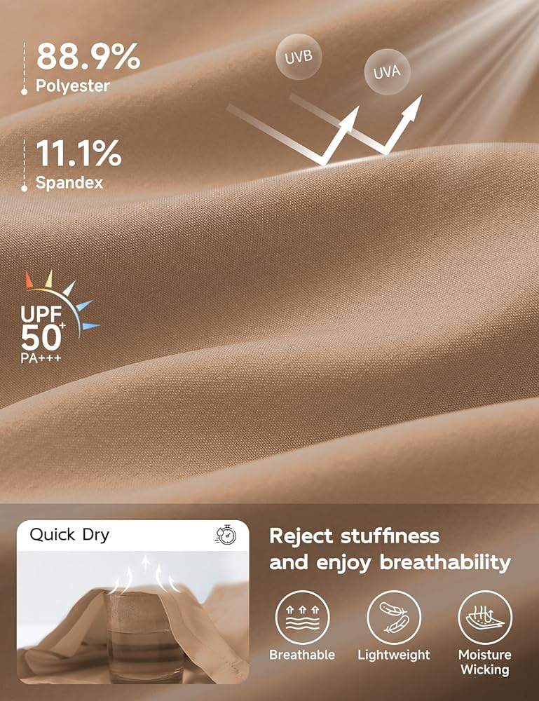 Quick Drying and Sun Protecting Fabric:Made from high-tech fabric, it dries fast and shields you from UV rays, keeping you dry and protected during workouts.