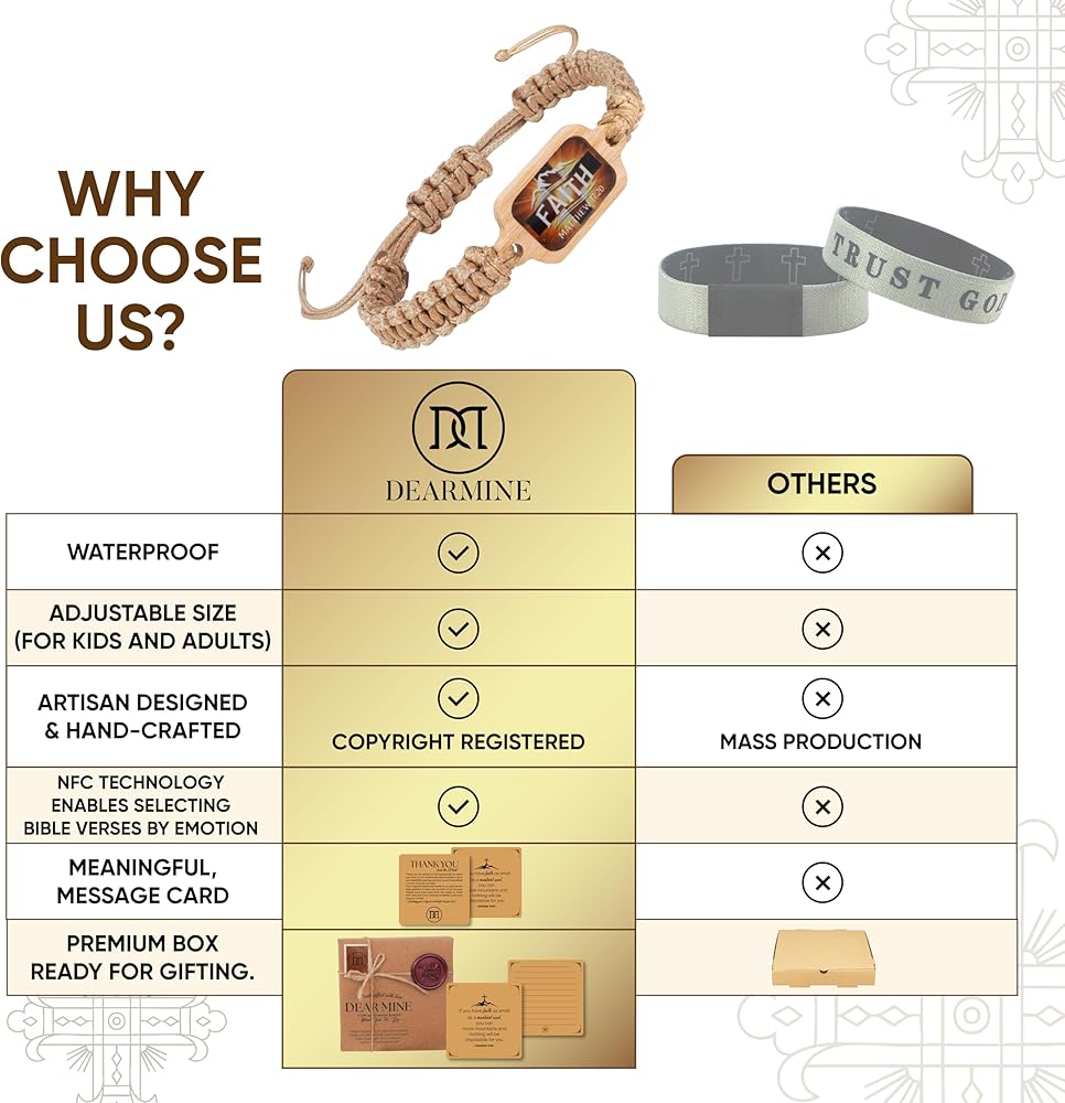 💪 HANDCRAFTED, DURABLE, AND ADJUSTABLE: This wearable Bible bracelet is handmade with care using premium, waterproof materials. Designed to last through life's challenges, it features an adjustable strap for a perfect fit. Lightweight and comfortable, it's ideal for daily wear, allowing people of all ages to express their faith in style.