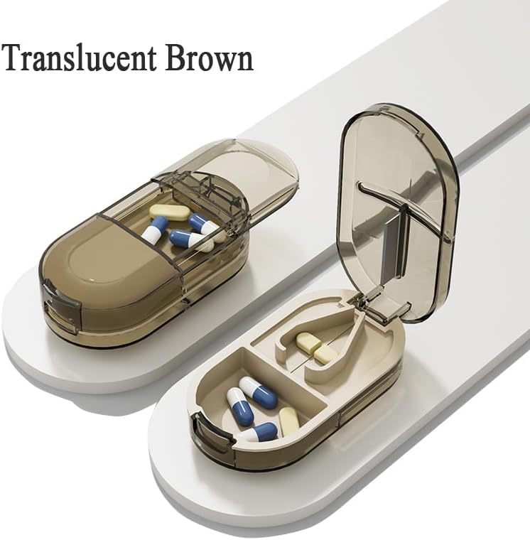 -1x 2 compartments small travel daily pill case organizer with pill cutter (transparent green)