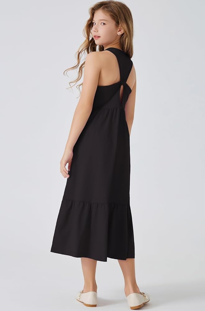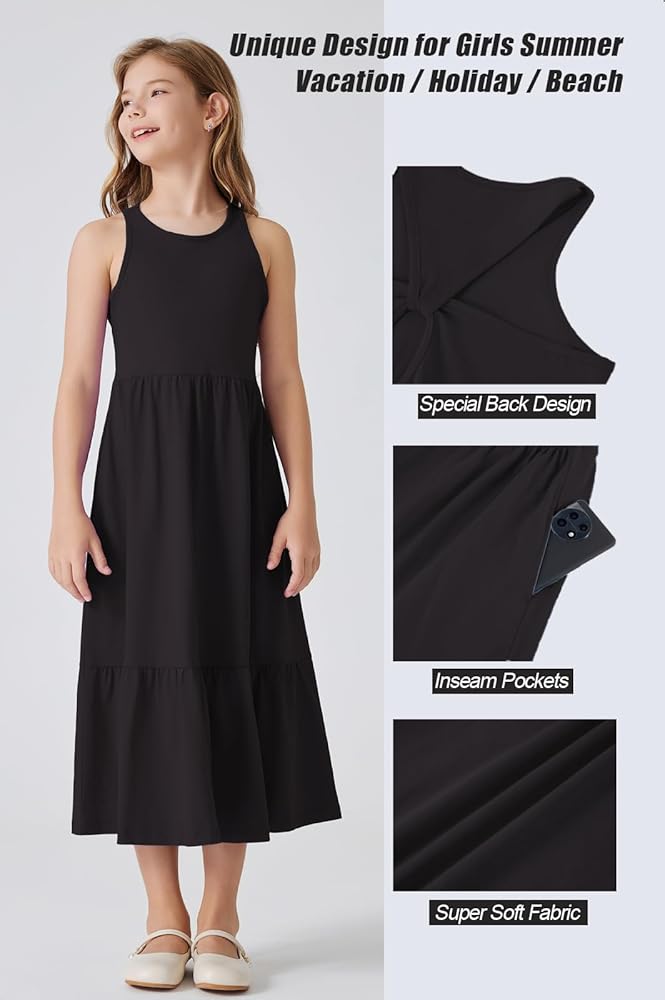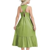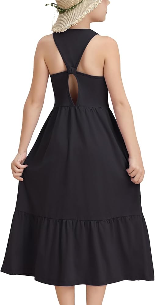【Funny Details】This summer long dress features U-neckline tank top style, loose A-line, tiered design, two side pockets, along with a fun cut-out back detail that adds more movement to her look.