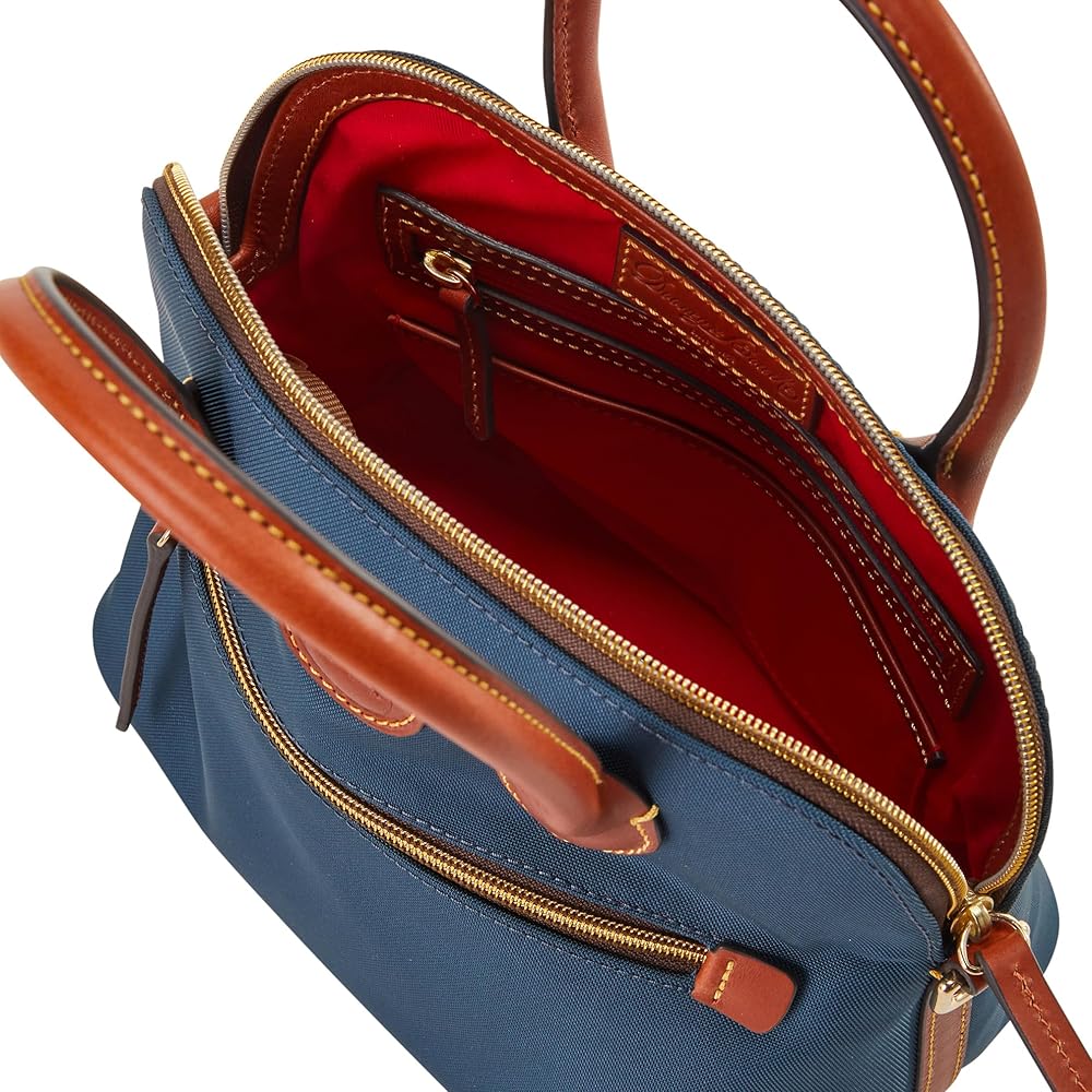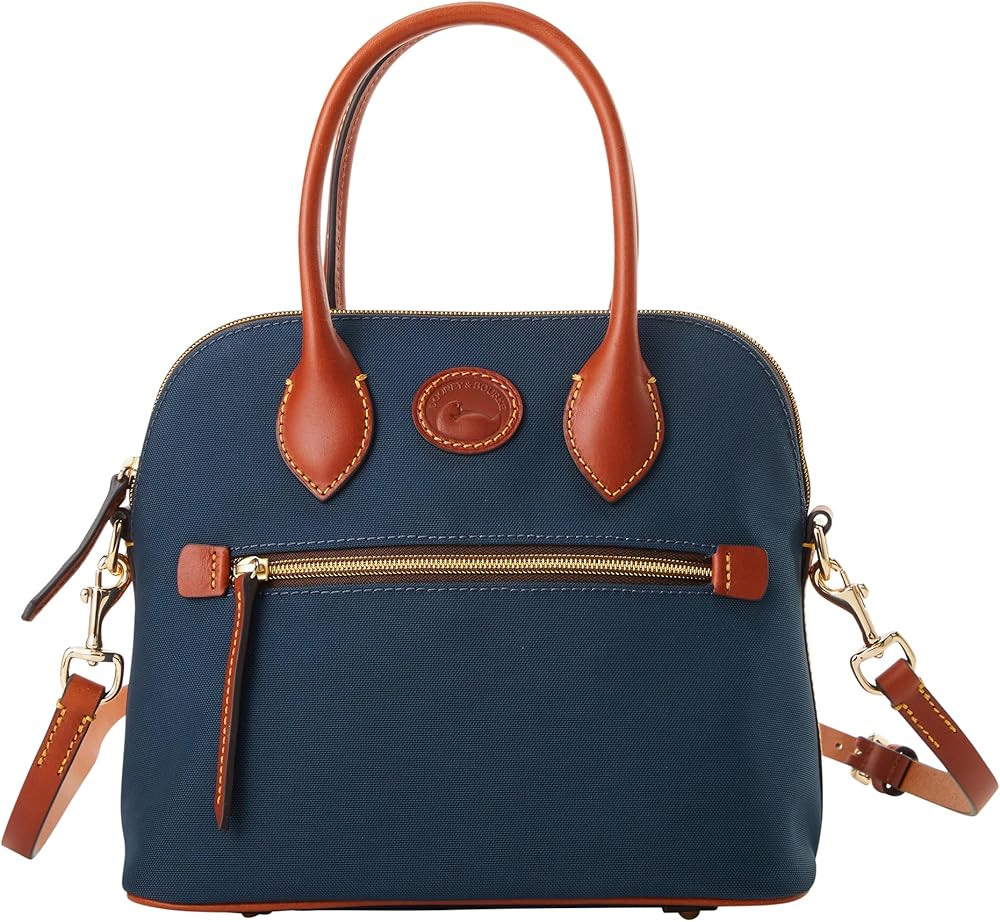 SIGNATURE DETAILS: These nylon bags for women feature leather top handles and a removable crossbody strap. Large outside zip pocket and zipper closure. Cell phone pocket, key hook, zip and slip pockets inside. Dimensions are 9.75" L x 5.75" W x 9" H.