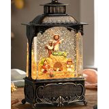 EASTER SNOW GLOBE LANTERN: The snow globe lantern shell is made of high-quality polypropylene, with a exquisite relief on the surface. Include an durable and efficient AC/DC Brushless motor. When powered on, the internal rotation drives sparkling silver sequins, while the top lights up with warm white light.