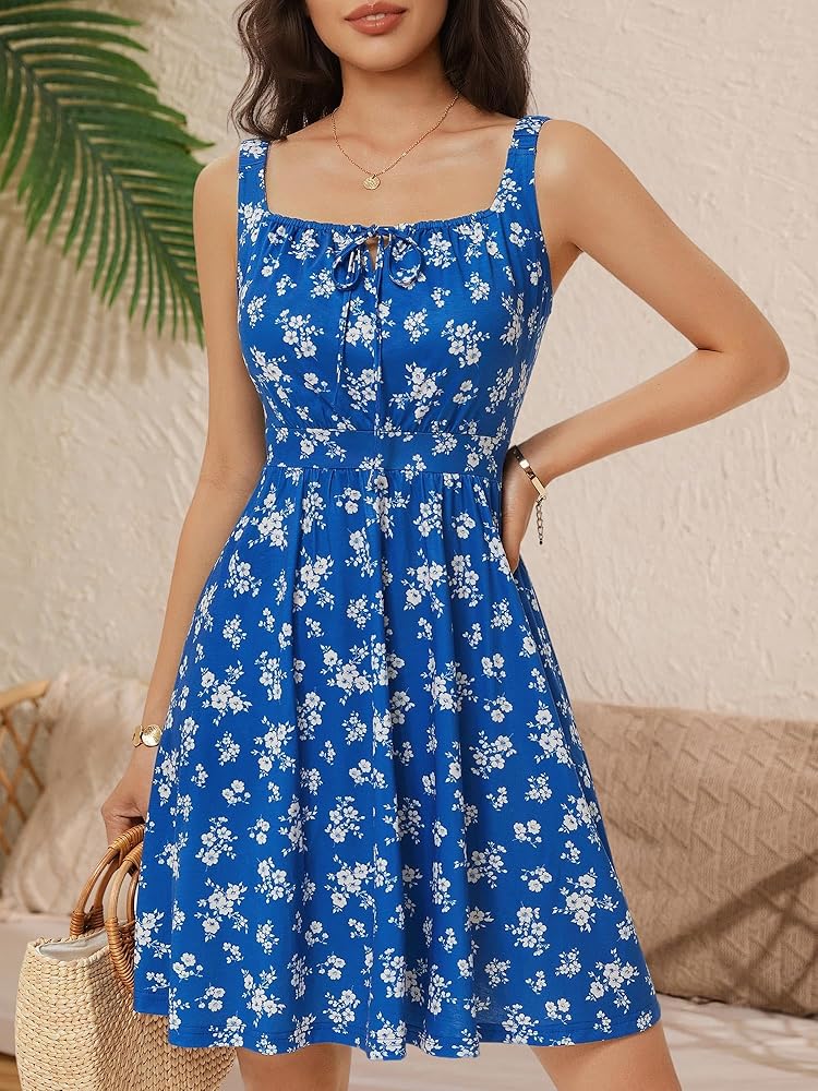 Fabric:95% Polyester, 5% Spandex. This breathable and lightweight sleeveless square neck dress is made from high-quality fabric that ensures you won't have to worry about transparency issues.