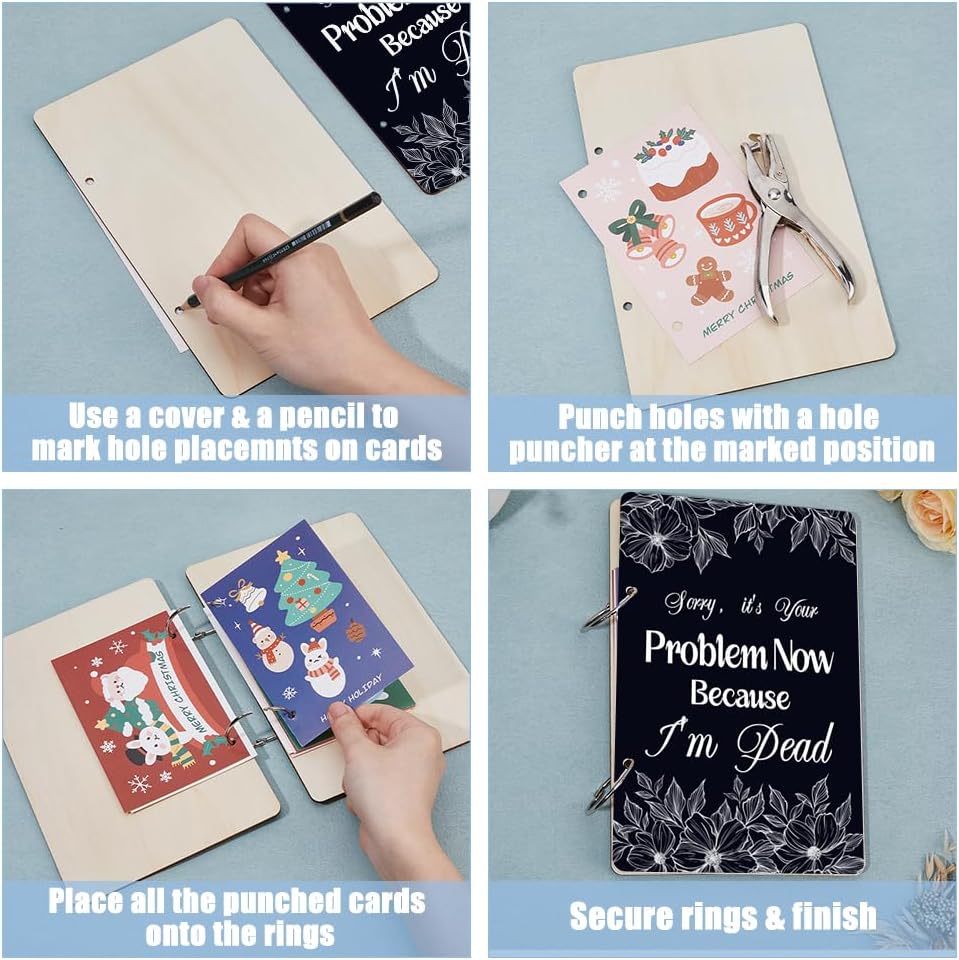 High Quality Wooden Materials: This greeting card organizer is made of high-quality wood, sturdy and can be stored for a long time; The iron ring is made of high-quality iron and is not easily bent or deformed.