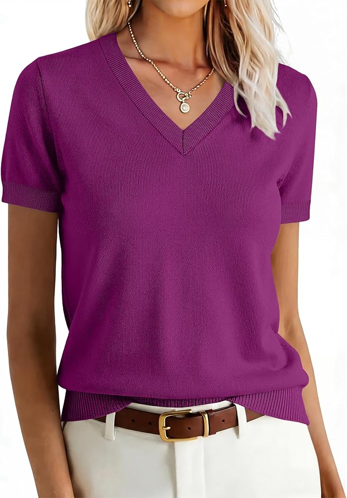 Features - This women's summer sweater features a dressy style, V-neck, short sleeves, and a knitted wool blend. It is perfect for daily wear, work, office, business casual, or street style.