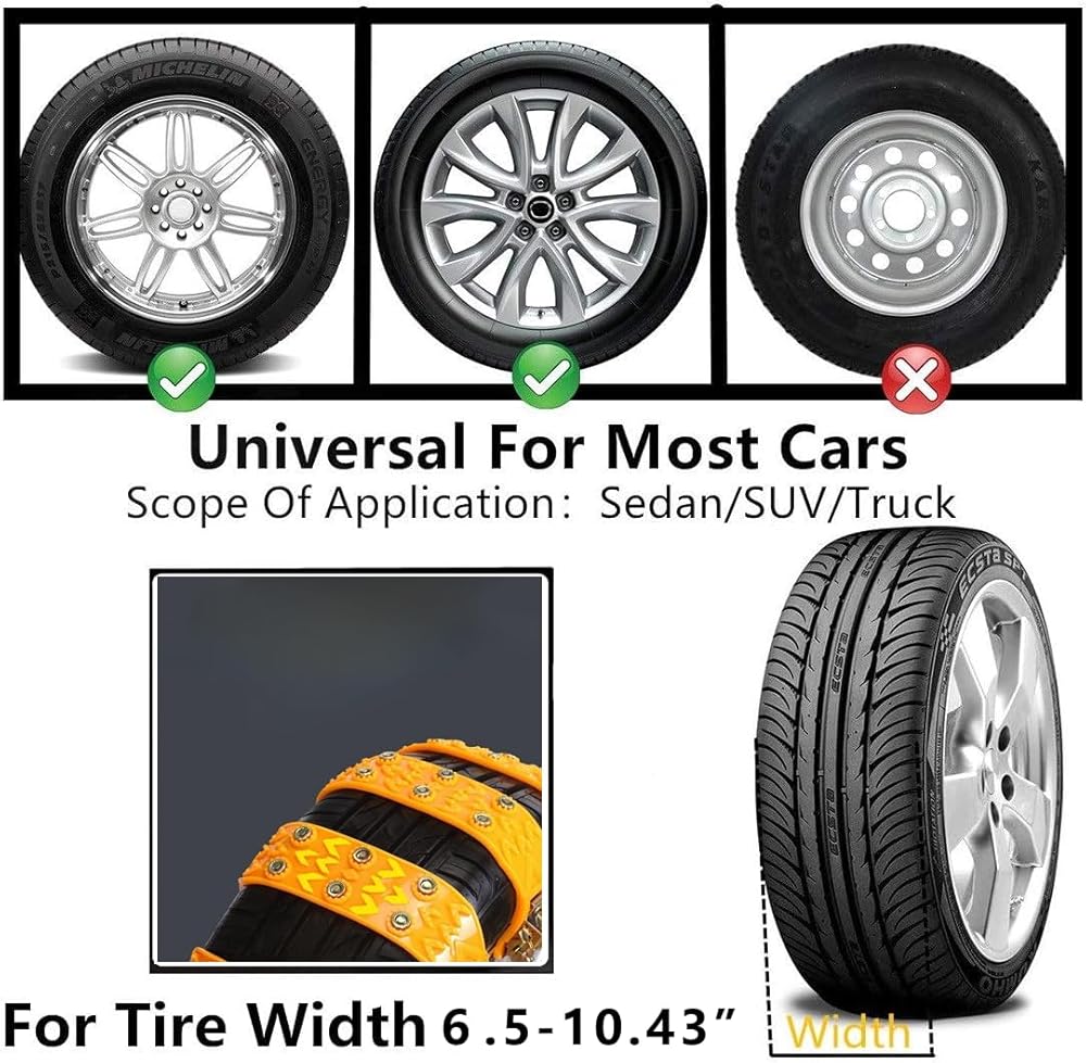 AUTO HIGH 10pcs Universal Car Snow Chains with Storage Bag and Tools, Tires 165-265mm for Car Truck SUV, Non-Slip Adjustable Winter Snow Chains. (double row nail)