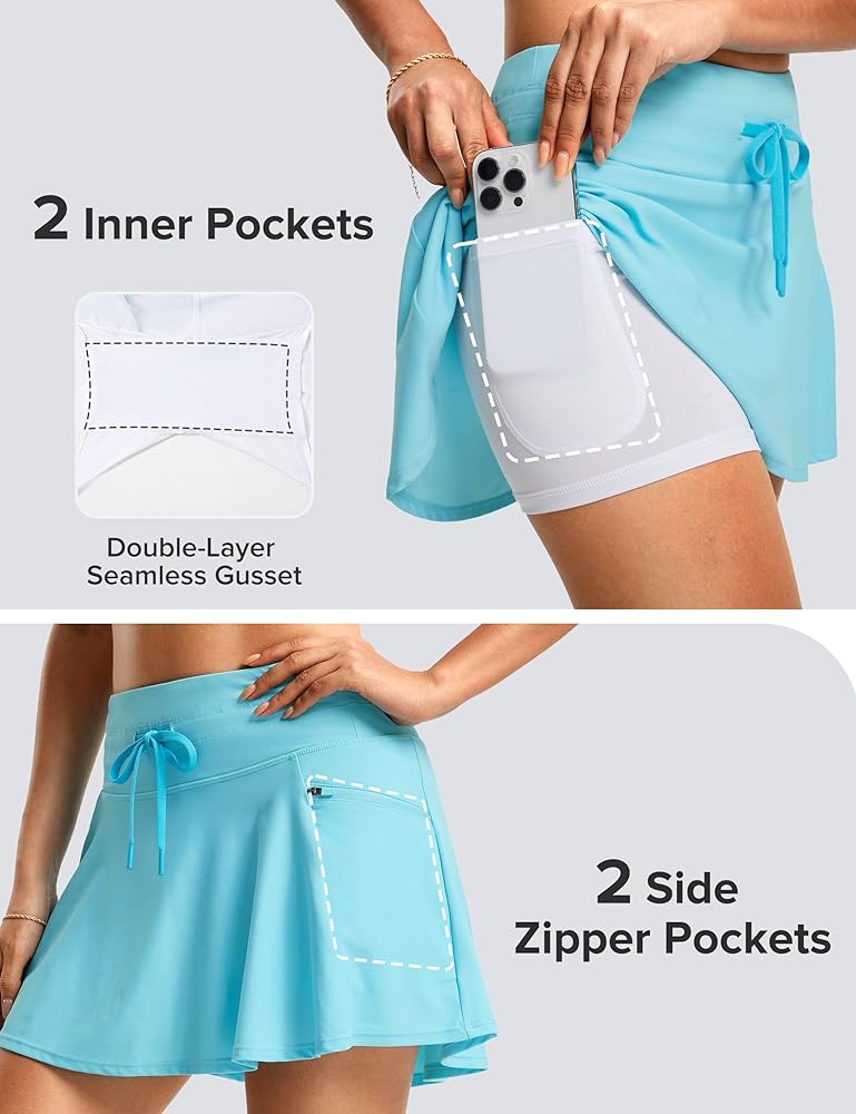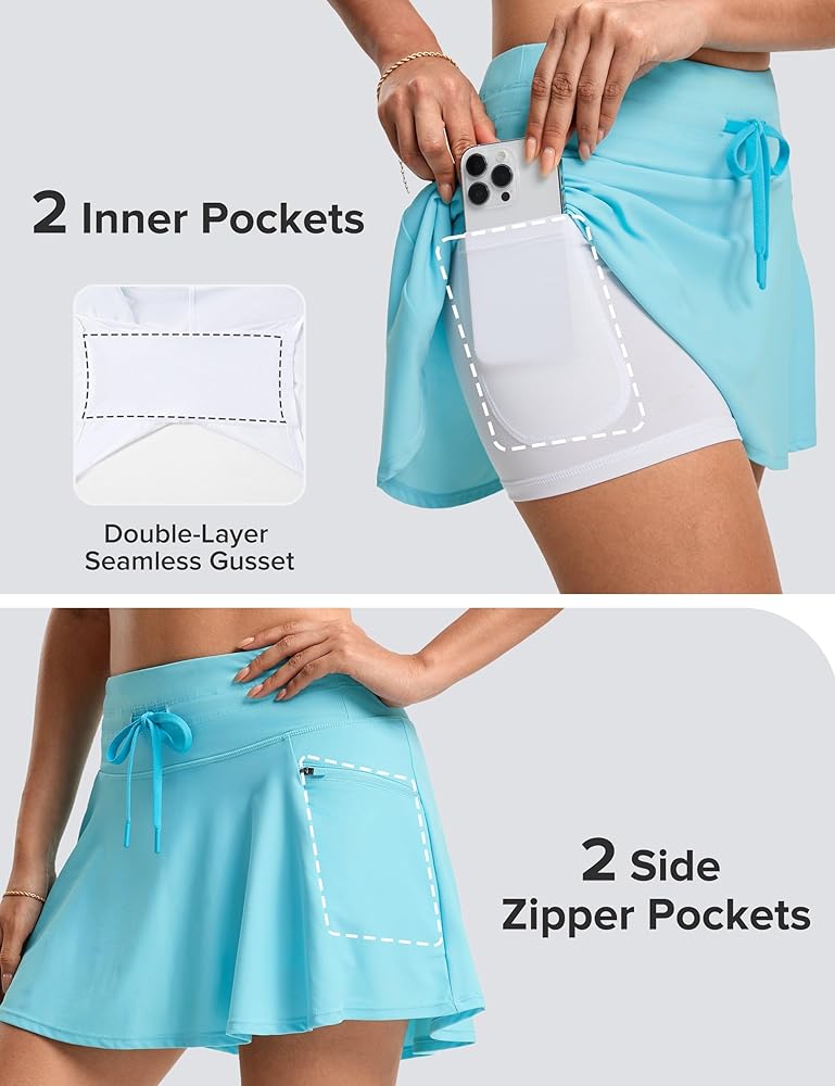 2 ZIPPER POCKETS + 2 INSIDE POCKETS: Deeply placed pockets on both sides allow you to easily access your phone and other items without lifting the hem of the skirt; and the 2 hidden inside pockets provide more storage space, truly freeing your hands
