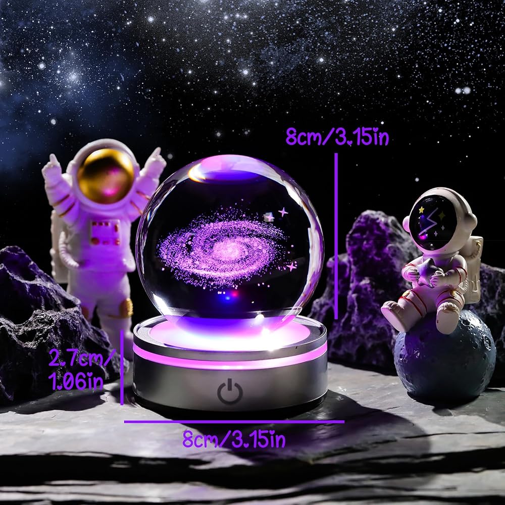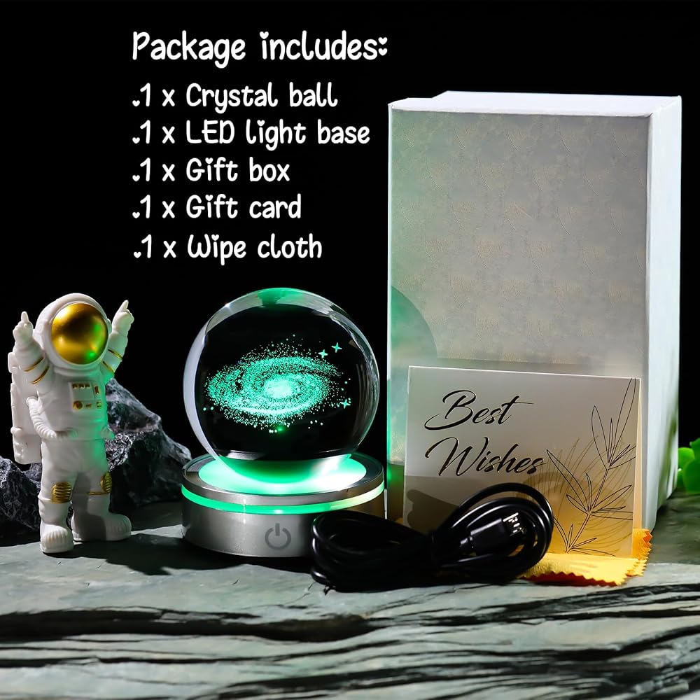 3.15in. 3D Galaxy Crystal Ball Astronomy Universe Gifts for Teens Boys Men, K9 Crystal Decorative Ball Engraved Galaxy Figurine Paperweight with LED Light Base Astronomy Birthday Gifts for Men Him
