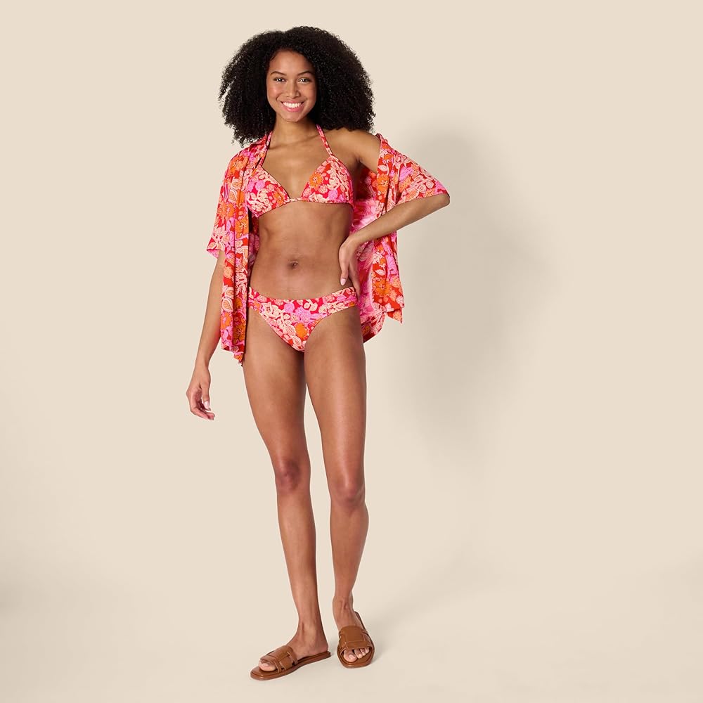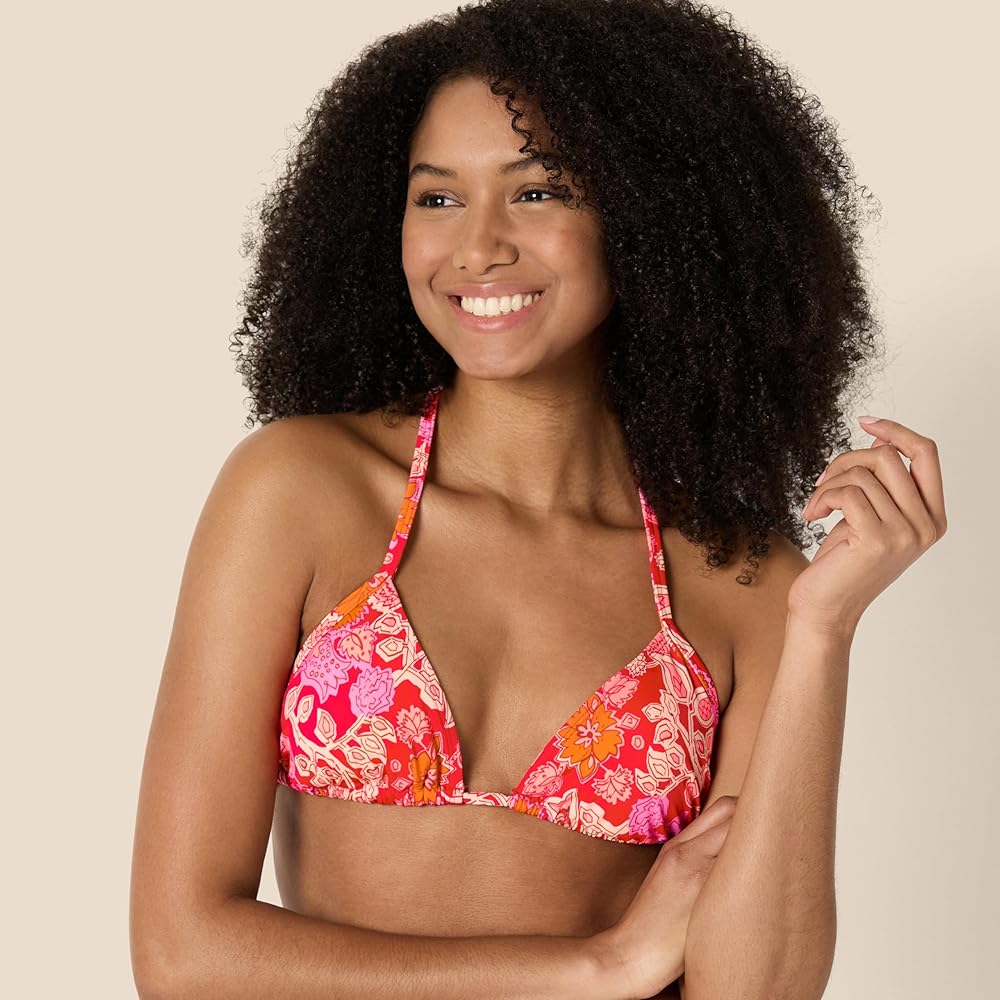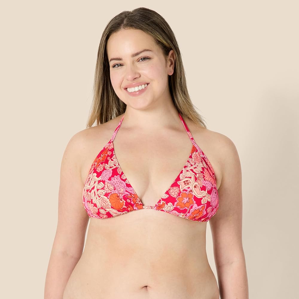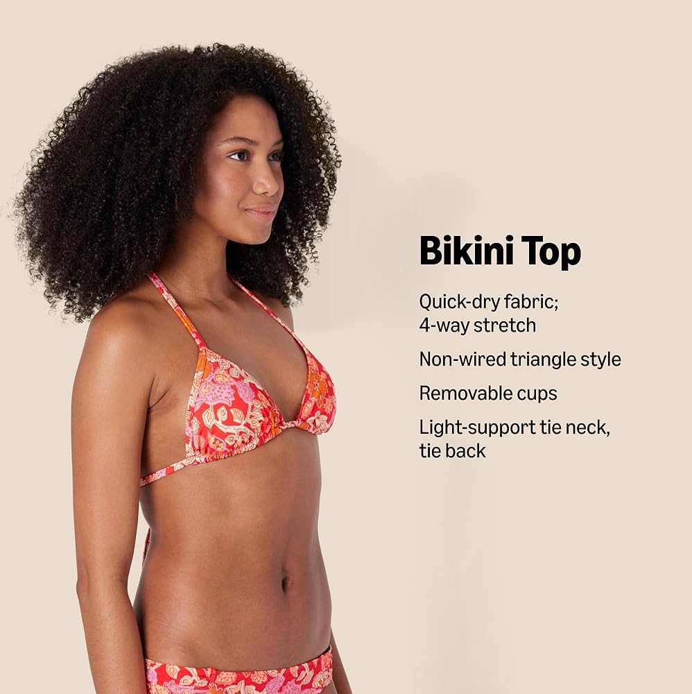 SWIM BIKINI TOP: This triangle bikini top is a go-to, must-have vacation essential. Amazon Essentials' women's swim collection is designed with versatile styles in modern shapes and unique, playful details. Crafted for effortlessly stylish comfort at the beach or pool. Available in coordinating colors and prints, making it an easy, versatile piece to pair with any Amazon Essentials swimwear bikini bottoms