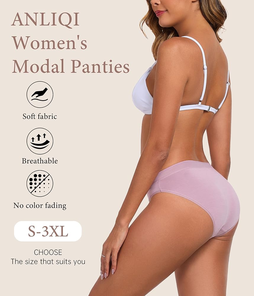 【Super Elasticity & Breathability】: Women's modal panties have strong elasticity at the waist and leg openings, which will not curl, squeeze or pinch. Modal ladies underwear panties hug you like a cloud, and are extremely breathable, making you comfortable every day without giving you a stuffy feeling. Moisture-wicking fabric keeps you cool and dry all day long.