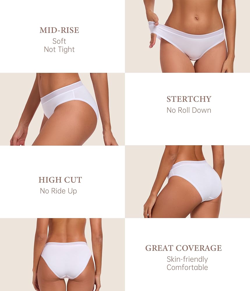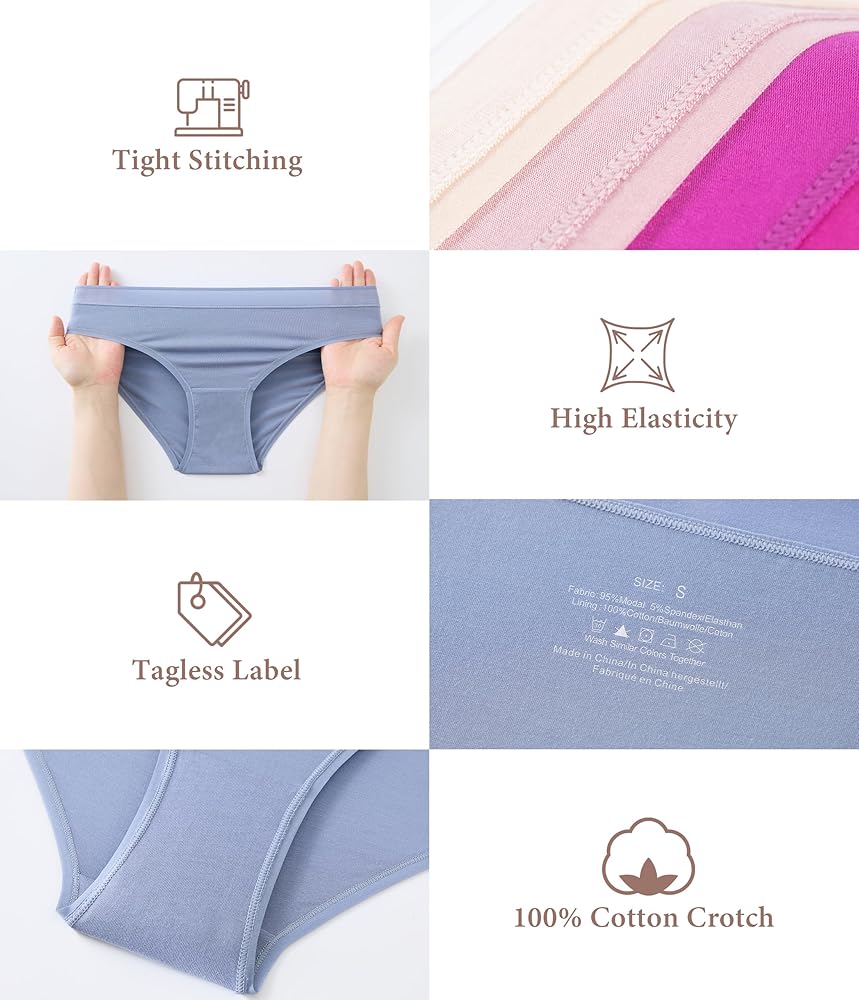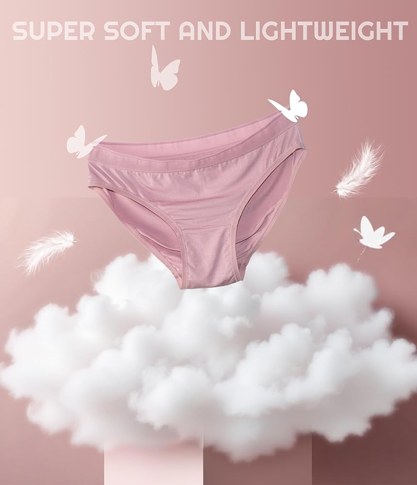 【Unparalleled Softness】: Underwear women pack is made of 95% modal + 5% spandex, double-layer cotton crotch. The fabric is super soft and lightweight, experience unparalleled comfort. The soft elastic waistband ensures a comfortable fit without discomfort or digging into the skin. You'll forget you're wearing them!
