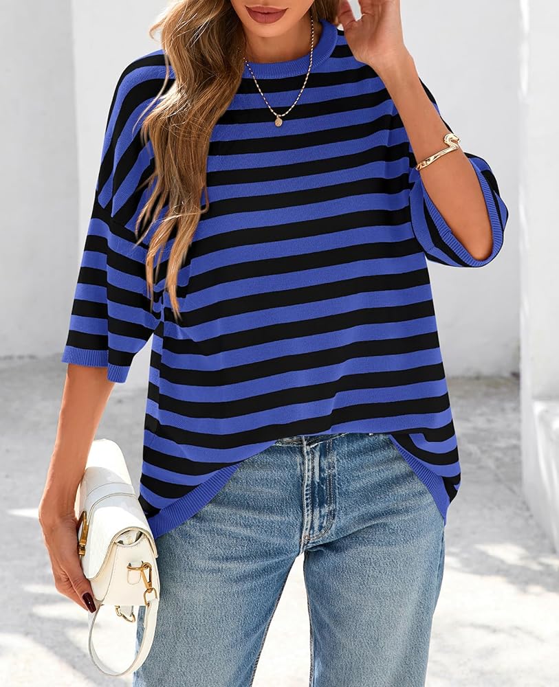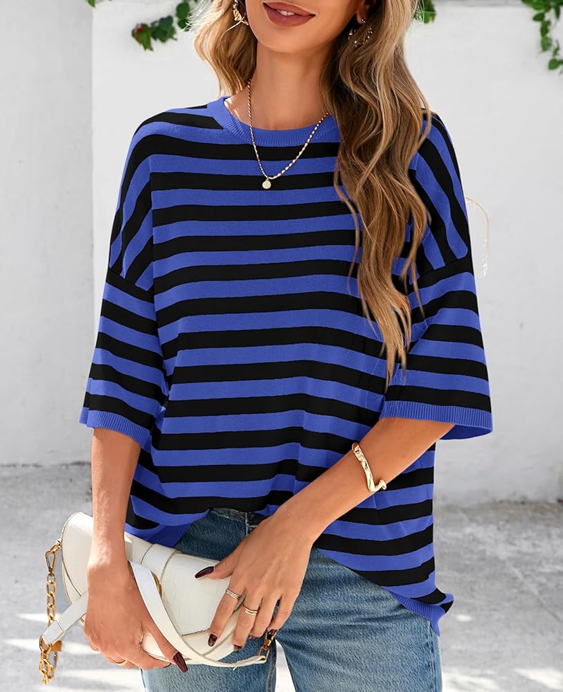 Design: Womens summer tops feature chic crewneck; color block sweater; ribbed knit tops; striped shirt women; half sleeve tops with drop shoulder; oversized sweaters for women lightweight; boxy short sleeve shirts; spring tops for women 2025