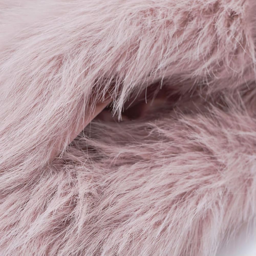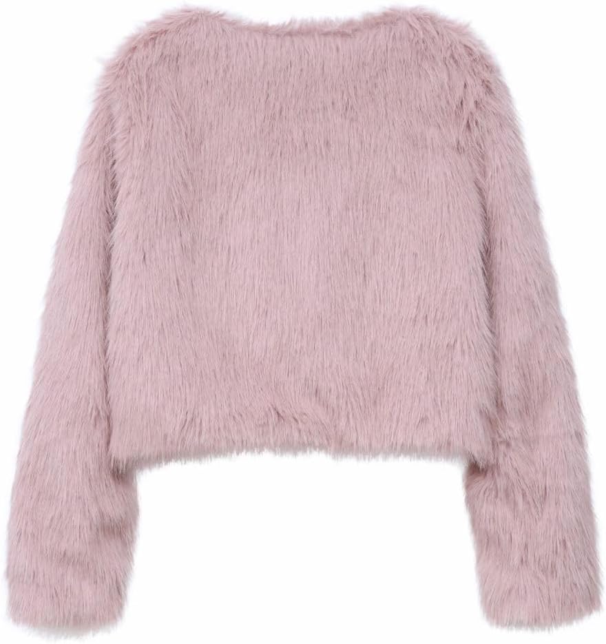 - The open-front cropped coat is made of quality faux fur fabric, mid-weight, and with lining. Soft to the touch, warm, and stylish