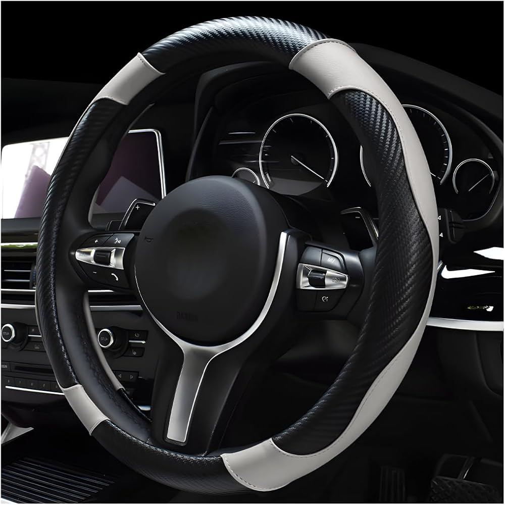 【Elegant & Fashionable】: Our steering wheel cover offers two stylish choices—one with a sleek carbon fiber pattern and another with a diamond-shaped embossed design. Both styles feature vibrant color stitching, which can significantly bring a touch of elegance to your steering.