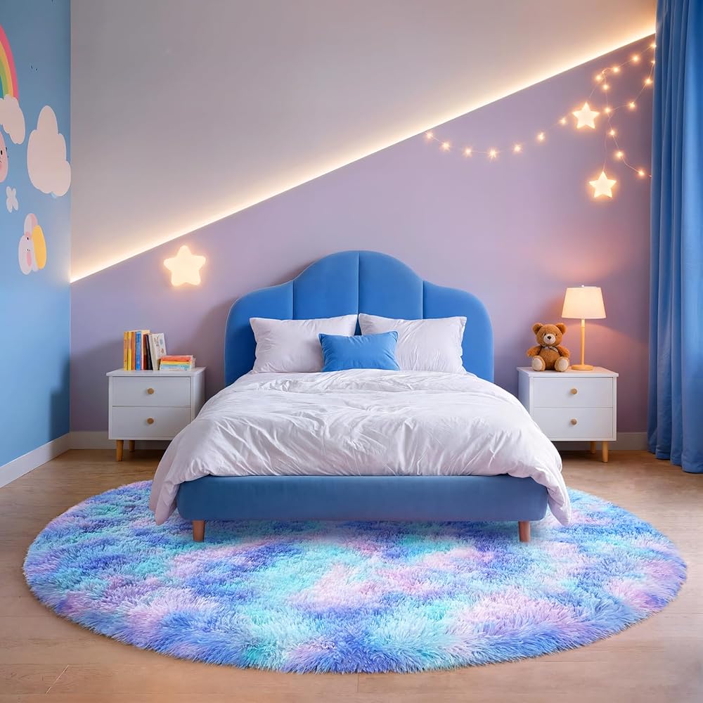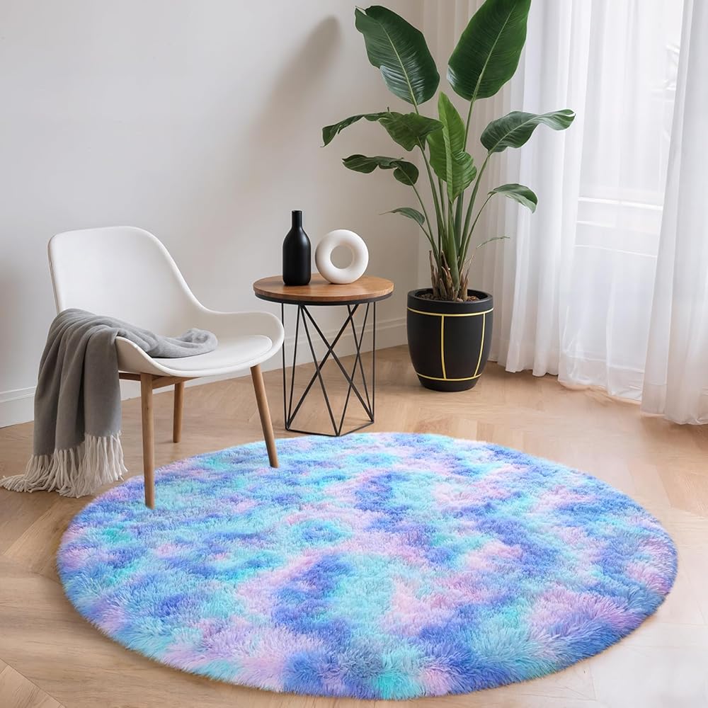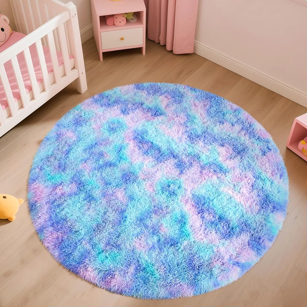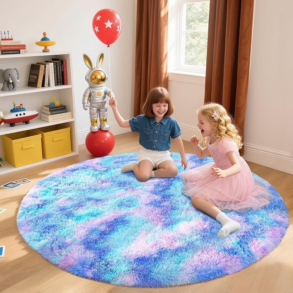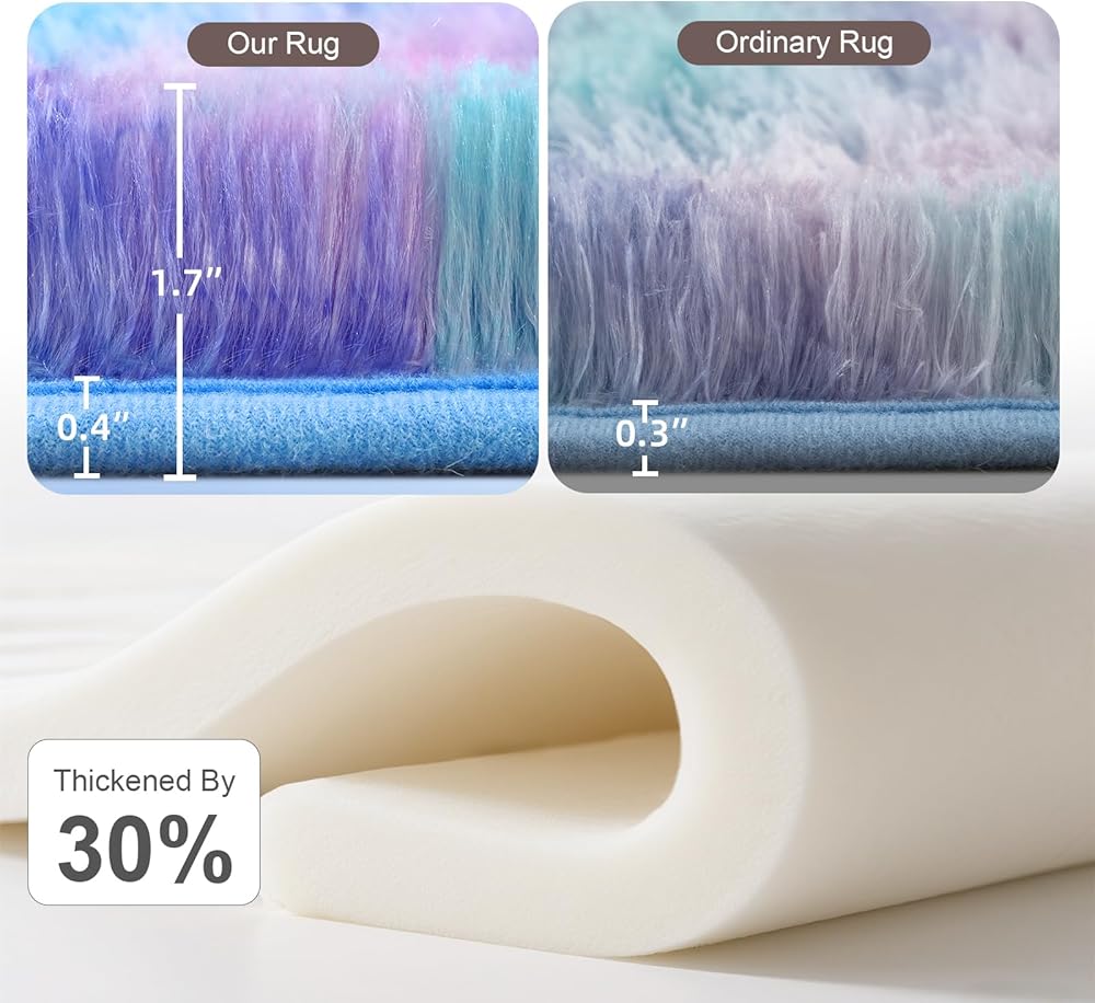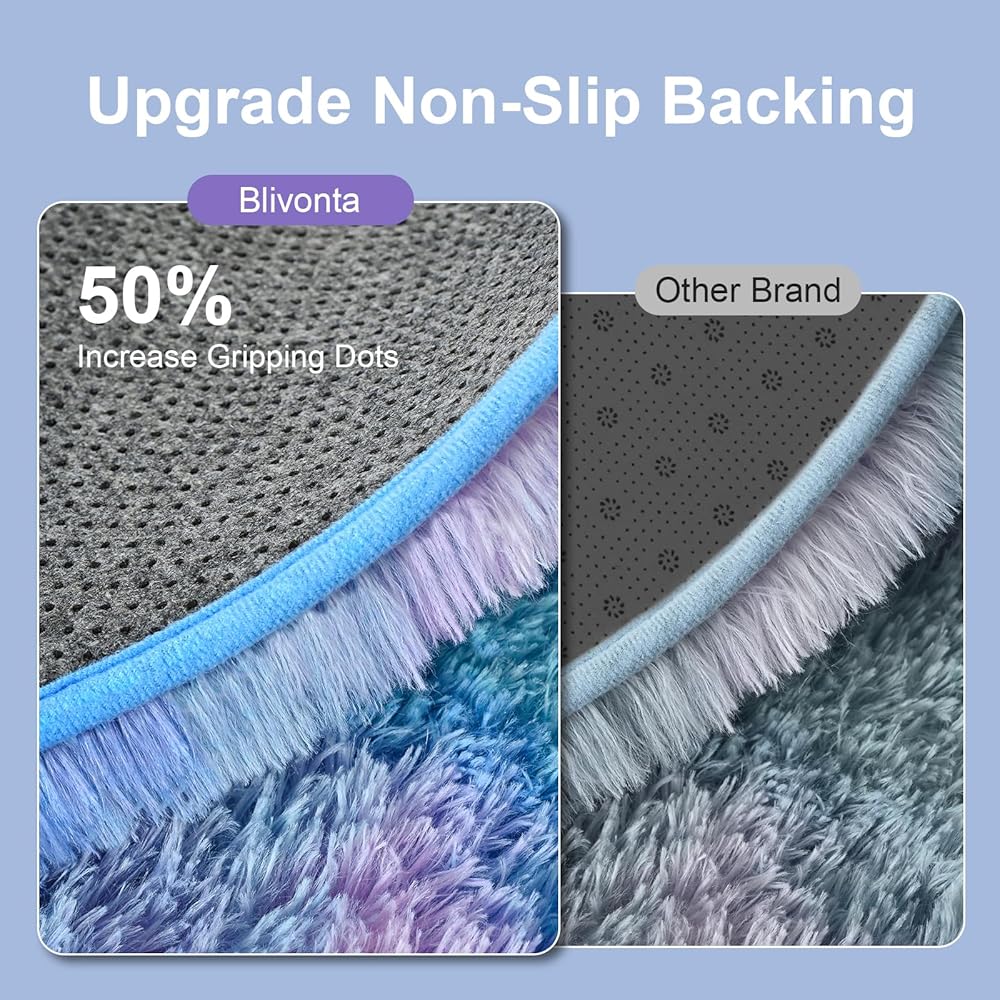 Anti-Slip Bottom: The non-slip bottom features high-density anti-slip dots that firmly grip the floor, preventing movement. Ideal for kids' rooms, living rooms, dorms or nurseries, this fluffy rug adds a pleasing aesthetic to any space with its colorful design