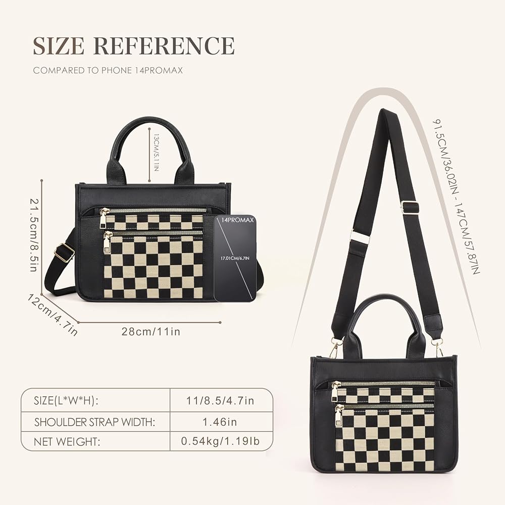 Compact & Lightweight Design: This women's tote handbag measures 11"(L) x 4.7"(W) x 8.5"(H) and weighs only 1.14 lbs, making it incredibly lightweight and easy to carry. The adjustable shoulder strap (15"-24") ensures a perfect fit for any occasion, whether it's shopping, traveling, or daily commutes.