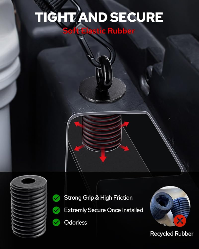 Not Easy To Fall Off. Benlari 1" tie down anchor is made of odorless soft elastic rubber. The rubber is expanded by tightening the eyebolt to provide maximum friction, which is not easy to fall off.