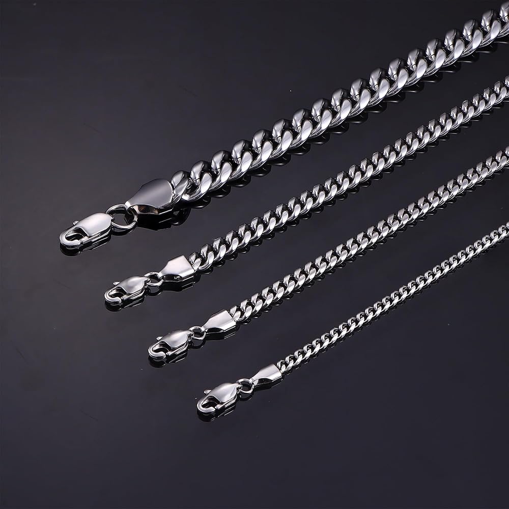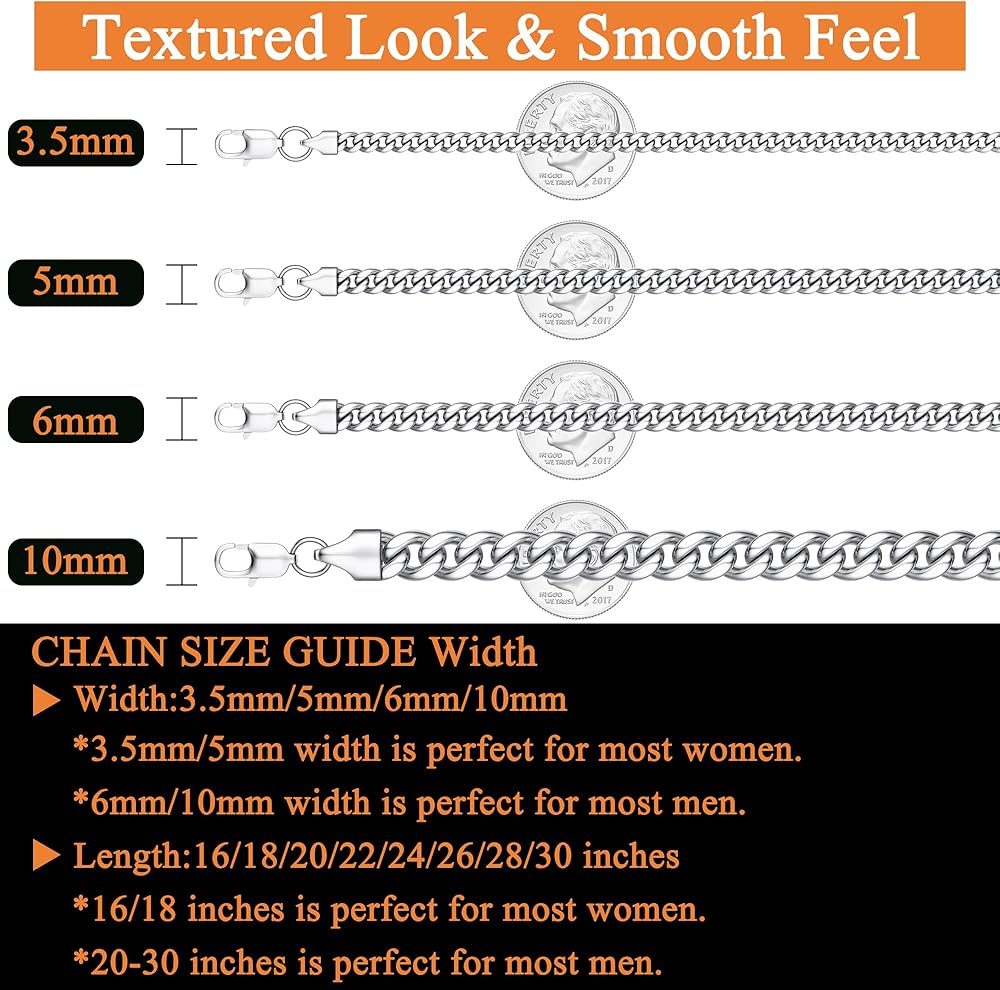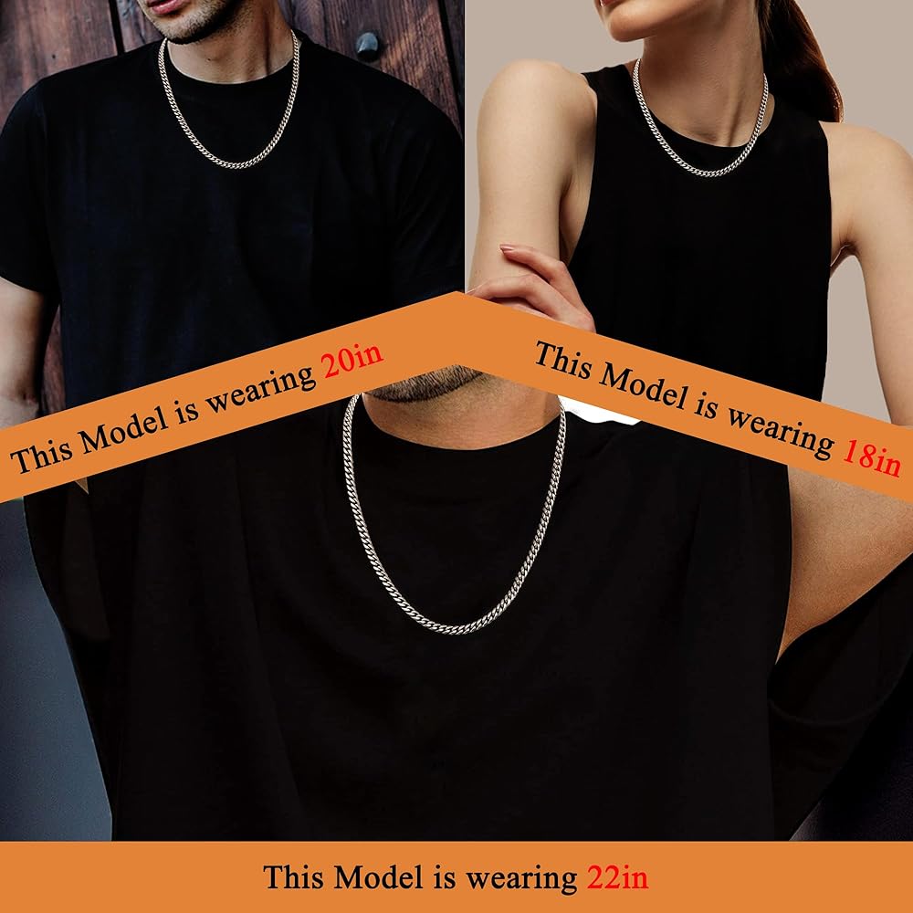 ESSENTIAL FASHION CUBAN CHAIN: The chain necklace women mens necklace chain boasts a classic flat diamond-cut bevel that shines more brilliantly than traditional cuban link chain for men women, offering an sheen. Our flat diamond-cut beveled links offer a much more reflective look than the standard curb chain for an elegant rich shine. Strong, durable and comfortable.