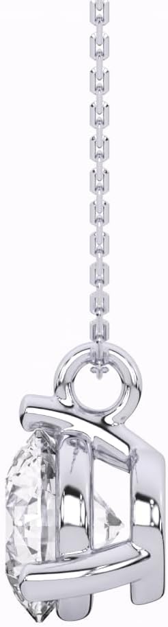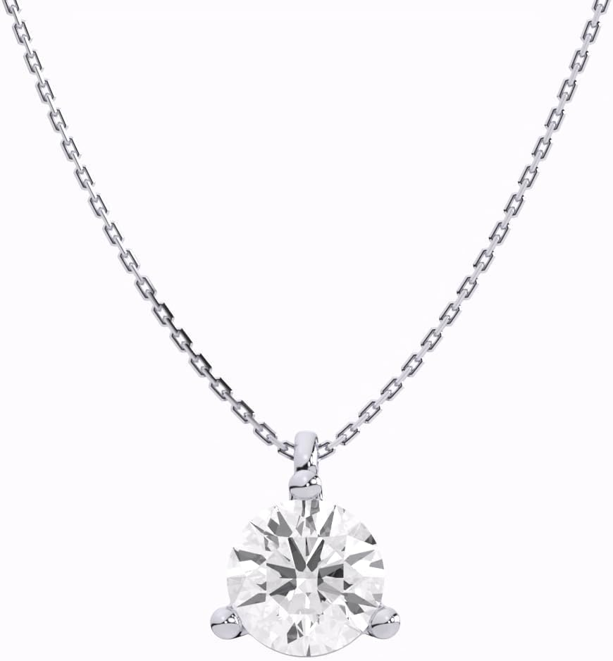 IGI Certified 1 Carat Lab Grown Diamond Round Solitaire Pendant Necklace for Women - 14k White Gold Necklace (I-J, VS1-VS2, 1.00 cttw) - 3-Prong Martini - 18 Inch Chain