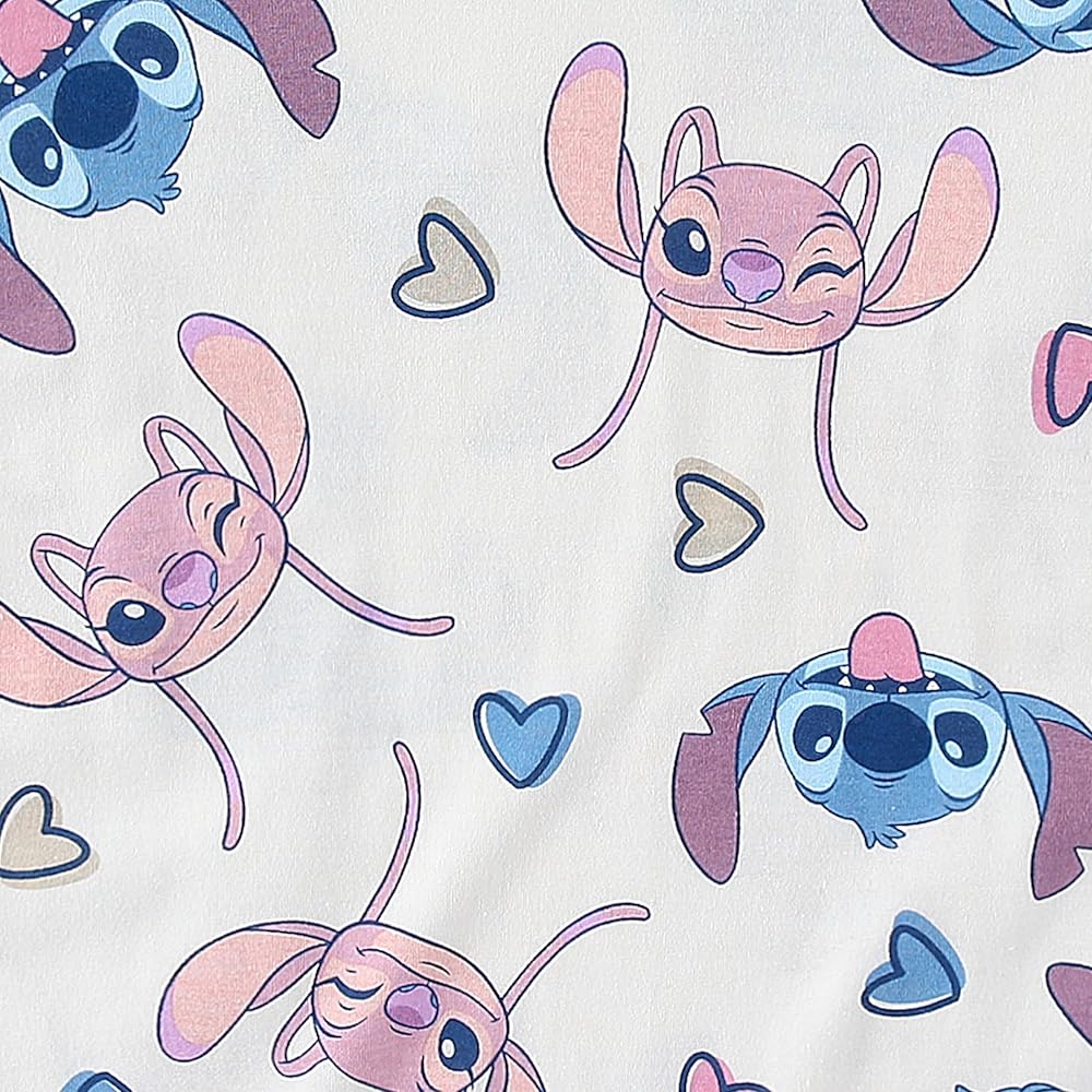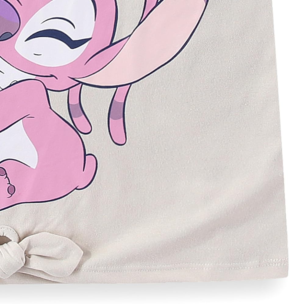 Includes two adorable Stitch and Angel themed tees with two uniquely adorable designs, one white tee showcases an allover print of Stitch and Angel surrounded by hearts, and one beige tee that has a cute front tie detail with a bold Stitch and Angel graphic for extra flair.