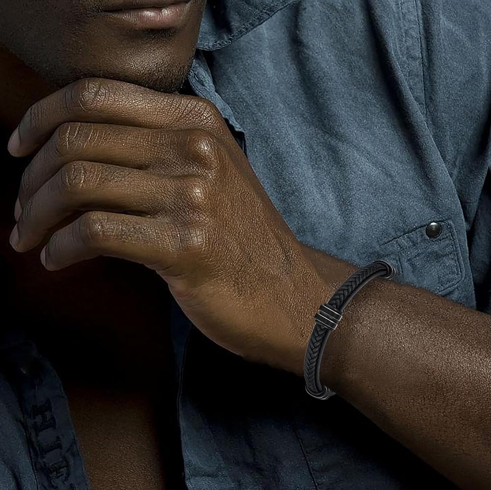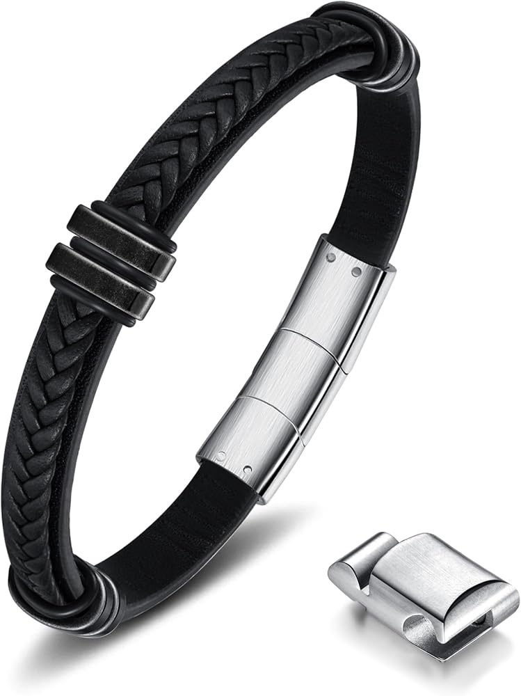 Leather Bracelet: This men's bracelet is crafted from high-quality leather, offering a versatile design that suits both casual and formal occasions. It's a refined accessory that enhances any look effortlessly.