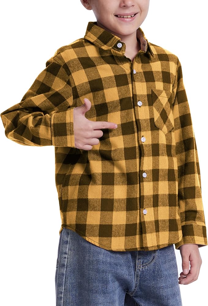 Versatile & Ideal Gifts: Casual button down shirt for kids boys and girls, great for layered or worn alone; You can roll up sleeves or tuck the hem into pants. Long sleeve button down shirts for boys and girls, easy to match with jeans, sweatpants and chino pants for a casual look for school, church or outdoor activities—this plaid button-down shirt is a must-have for every kid's wardrobe. Perfect gifts for children in birthday or any festivals