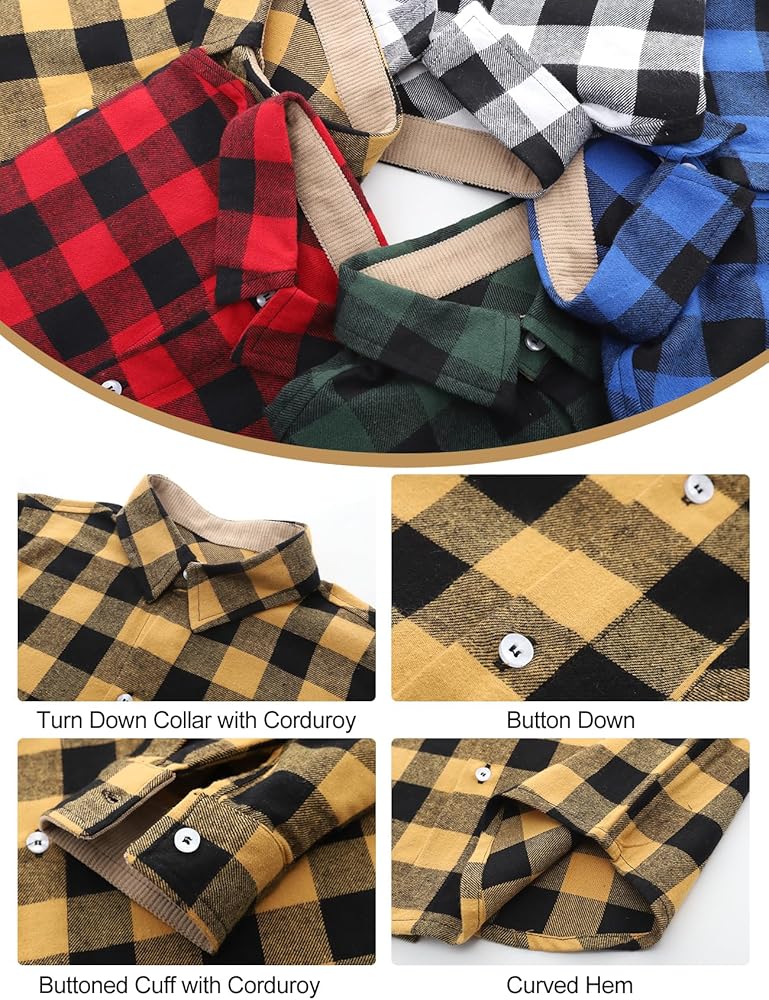 Functional & Durable & Easy to Care For: The convenient chest pocket adds a practical touch, while the buttoned cuffs provide a secure fit and easy adjustability for active kids. Designed to withstand active lifestyles, this plaid shirt is machine washable and retains its shape and vibrant colors even after multiple washes