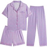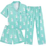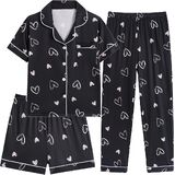 Design: Button down shirt, short sleeve, 3pcs casual sets, chest pocket, lapel collar, matching with a long pajama pants and shorts, elastic waistband, casual loose fit. Boys girls pajamas sets featuring comfortable and breathable fabric for your kids!