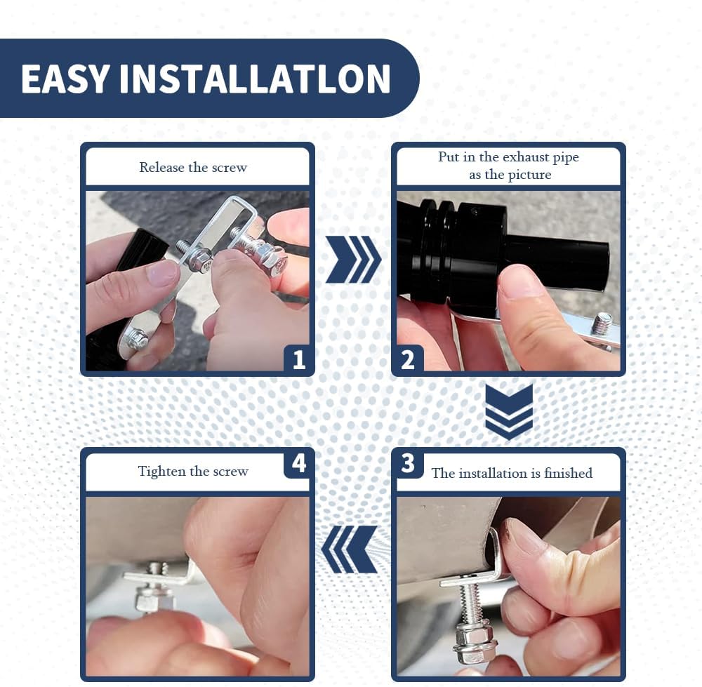 [Easy installation] : This car exhaust whistle is equipped with L-wrenches and bolts, which can be easily fixed. Loosen the bolt on the turbine whistle first, and then place the whistle into the exhaust whistle, with the wider opening facing inward. Finally, tighten the bolt