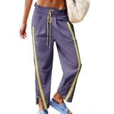 Material: Crafted from 95% Polyester, 5% Spandex; soft, skin-friendly, breathable, lightweight fabric, this contrast color wide leg pant is comfortable for all-day wear in Spring, Summer, Autumn