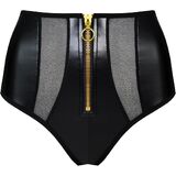 Coming in hot! This vegan leather highwaist brief with zip front closure is the perfect thing to tease your special person. Designed to hug your curves, these pieces are sure to please.