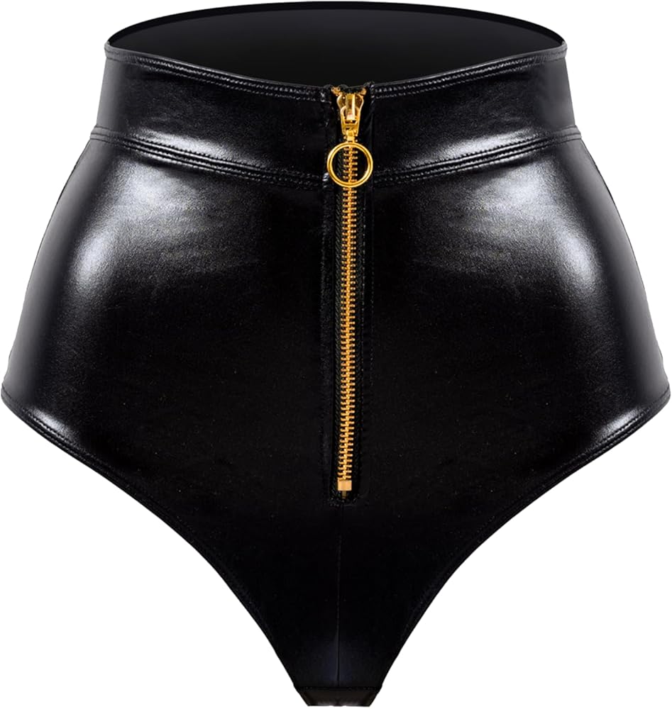 Soft Stretchy Waterproof Faux Leather Material,Highwaist Style with Front-open Zipper. Our material is well stretchable, if you find out the Brief on you is loose,or high-cut too much,or too high waist, Please send back to exchange the one size down; if you find out the Brief on you is too tight, Please send back to exchange the one size up.