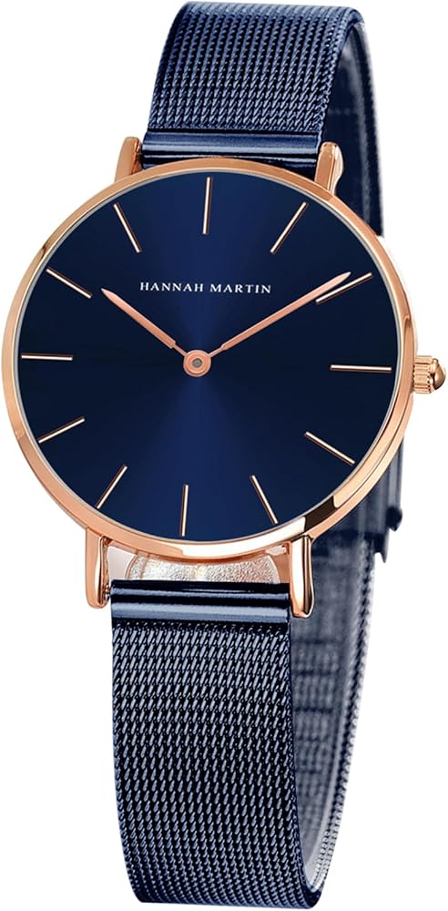 DAINTY WATCH-STYLISH AND ELEGANT DESIGN: HANNAH MARTIN women's wrist watch features a mineral glass crystal that protects the watch from scratches while combining with the sparkling sparkling lenses on the dial to create a glamorous and eye-catching look that adds a touch of sophistication to any outfit.The stainless steel band not only adds a touch of sophistication to your wrist but also offers exceptional resistance against rust and wear, ensuring a long-lasting shine.