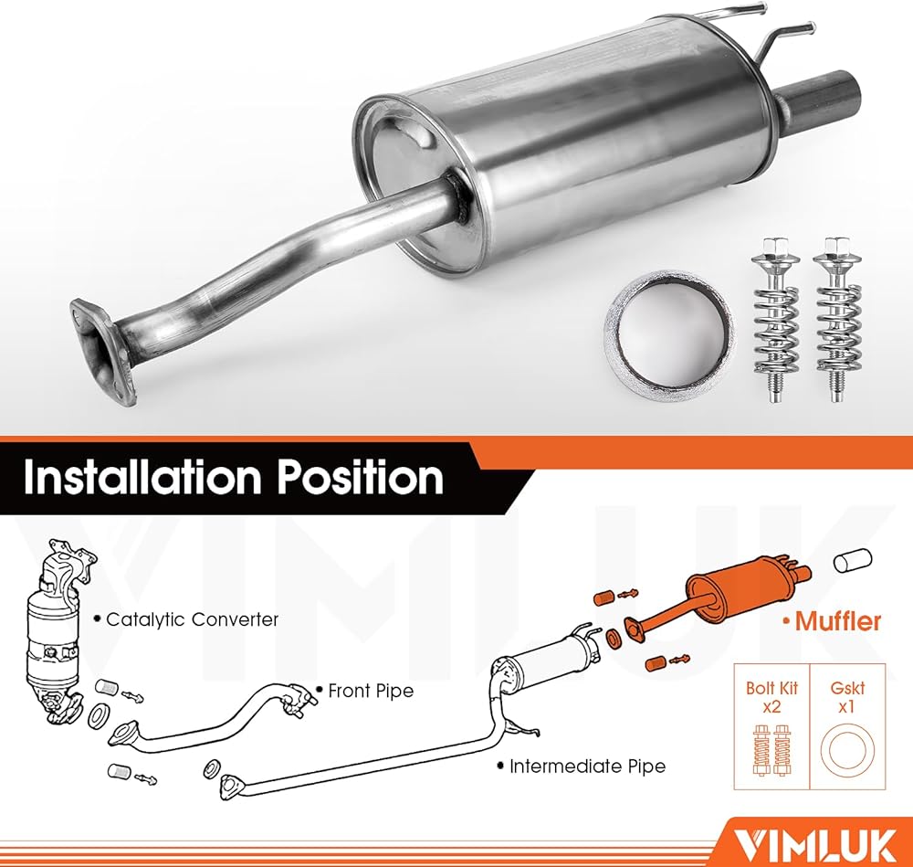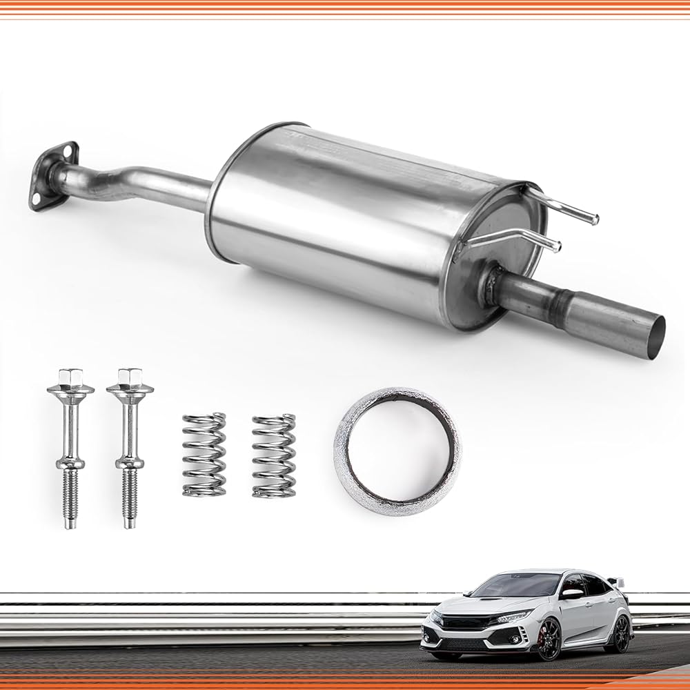 409 Stainless Steel Rear Exhaust Muffler Compatible for 2006-2011 Honda Civic 1.8L and 2006-2011 Honda Civic Hybrid Sedan 1.3L-Including Gasket and Bolt kit Part Number:18307-SNA-A01(VK-HC01)