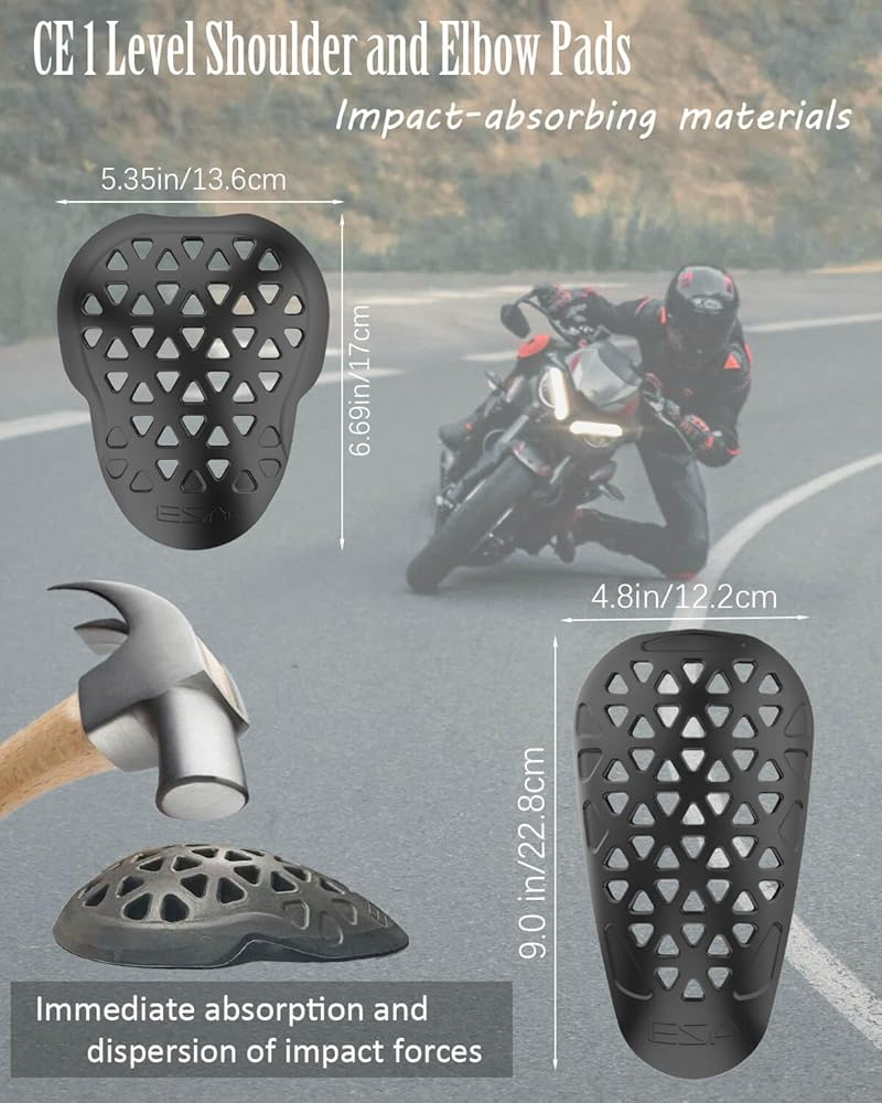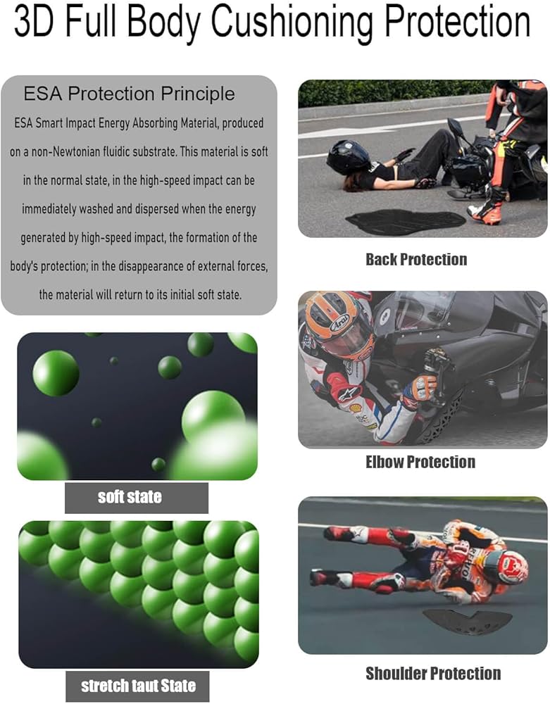 [Advanced Shock Absorption]: Crafted with ESA shock-absorbing materials, our protective gear efficiently absorbs impact energy, minimizing localized injury and enhancing your confidence while riding or participating in other high-action activities.