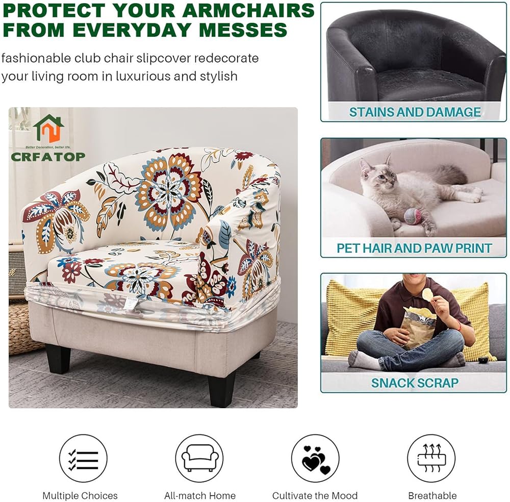 Perfect Chair Protector: CRFATOP club chair cover with cushion cover can ensure your club chair fully covered. In addition to protecting your club chair from abrasion, tears and pets scratches. It will rehabilitate old tub chair and you don't need to spend more money to replace the chair
