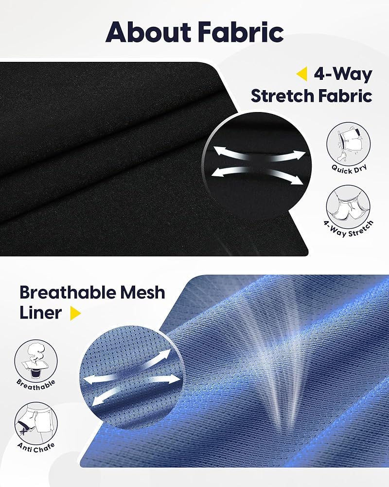 【4-Way Stretch】: Mens athletic shorts are made of polyester and spandex blend material, lightweight&breathable. 4-way stretch fabric provides excellent comfort and increased maximum freedom of movement for workout or running, sweat-wicking fiber help dry quickly and stay cool