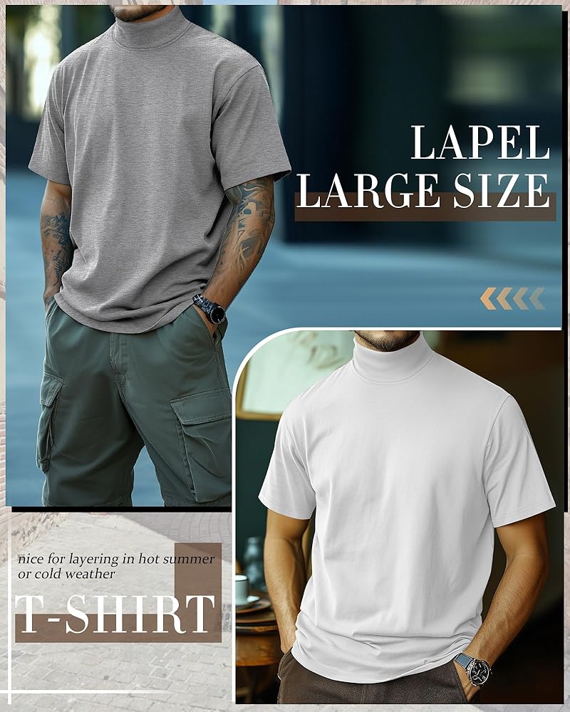 Package Included: you will get 3 pack big and tall men's turtle neck shirts in solid colors; Ideal for you wearing daily, business, work, party, prom, wedding, meeting, semi-formal or any other casual occasions; Suit for summer and cool weather
