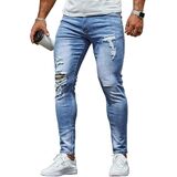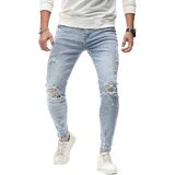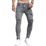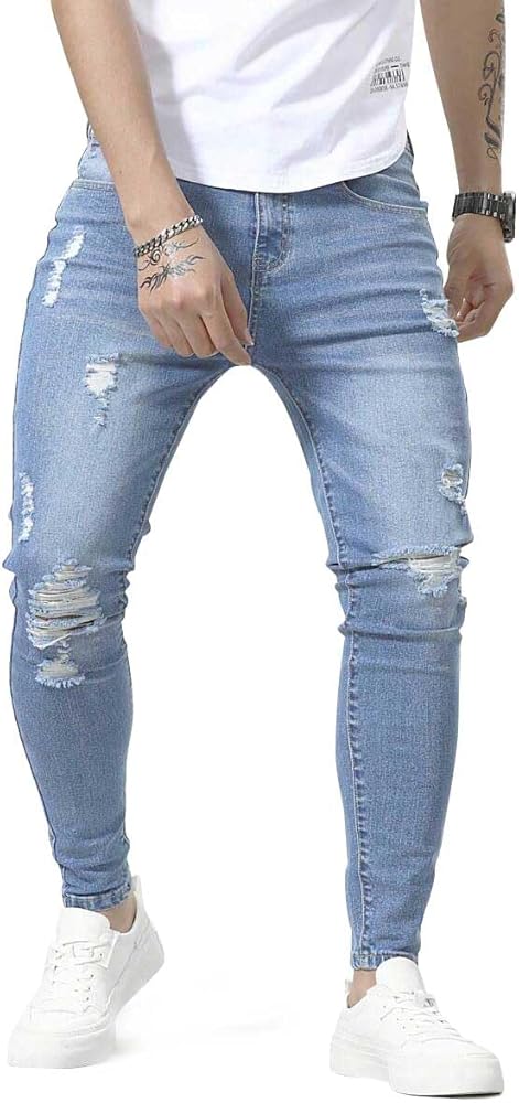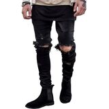 Mens ripped jeans destroyed denim jeans,with destroyed ripped design on the knee,those jeans show your charming taste and keep you in fashion style.