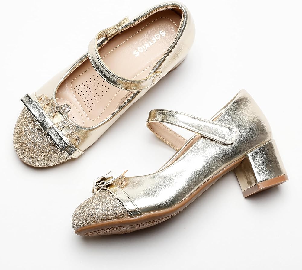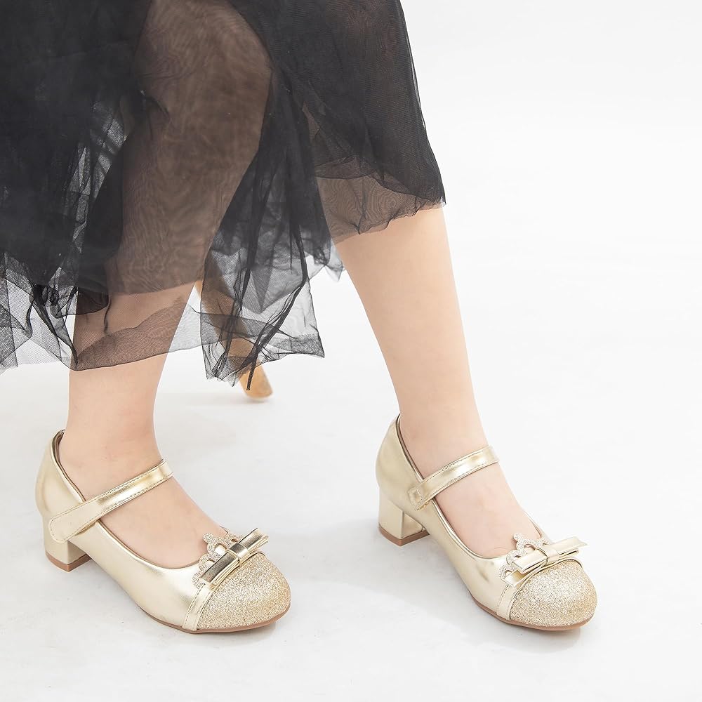 CONVENIENT CLOSURE:The girls heels feature Velcroe design to adjust the ankle strap. Let your little girl quickly and easily put these Mary Janes on and off for kids girl.