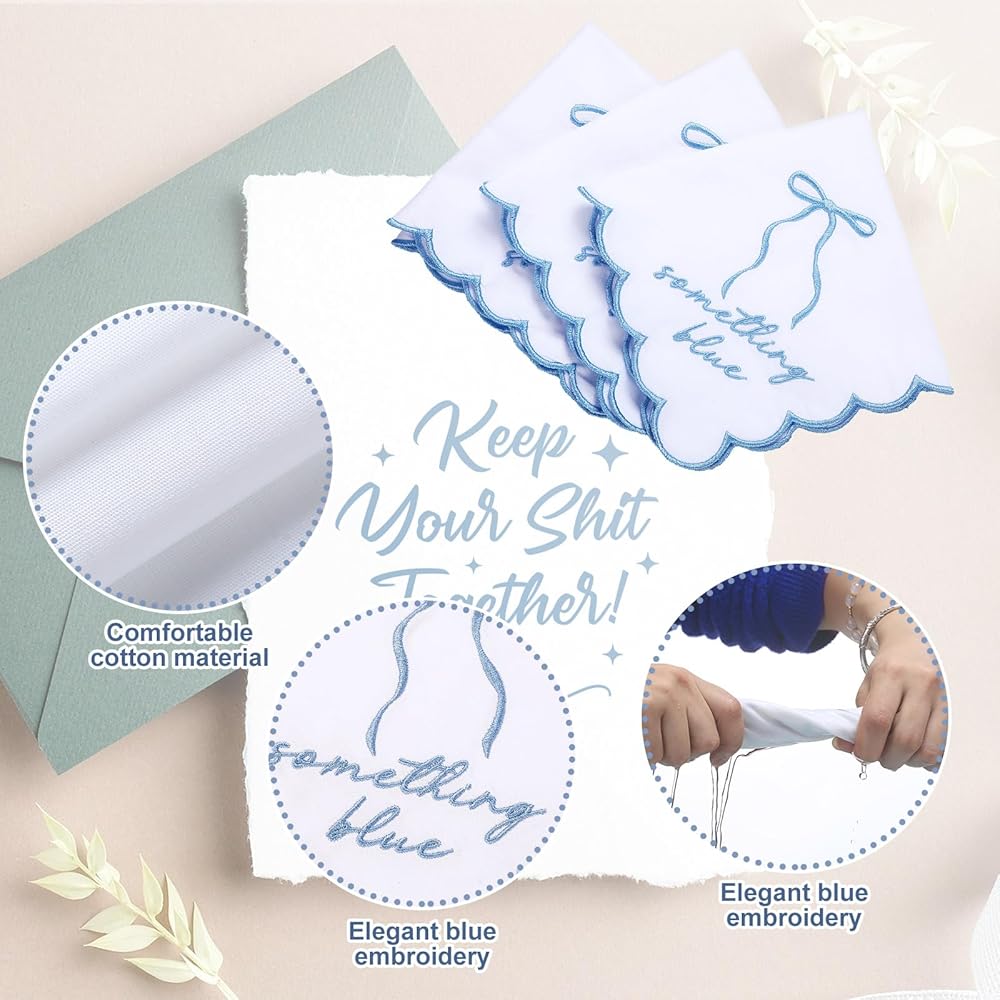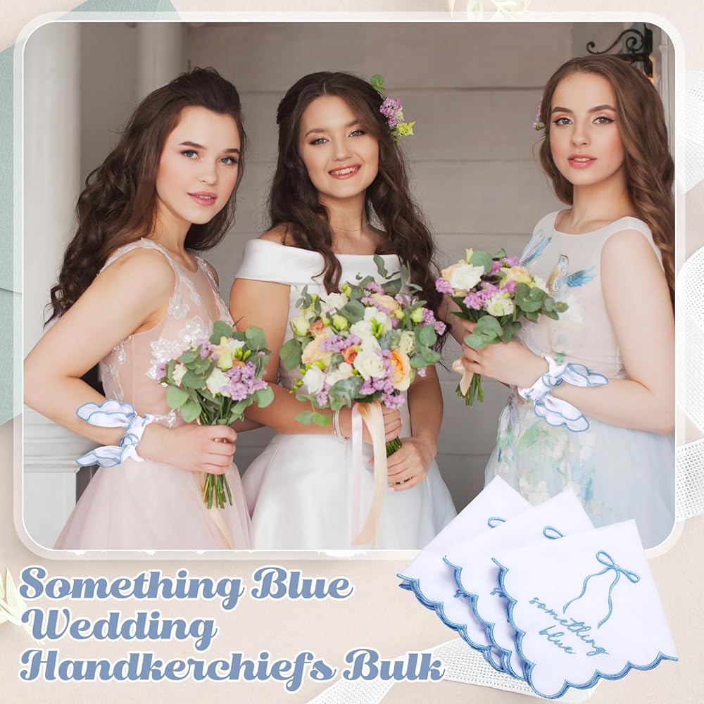 Comfortable Wedding Keepsake: our something blue for bride keepsake hankies are made of soft cotton material, so they can be washed by hand or machine with cold or warm water and can be ironed; They are comfortable touch for use, and the handkerchief can be safely ironed to remove creases and be repeated use, stay with you for a long time