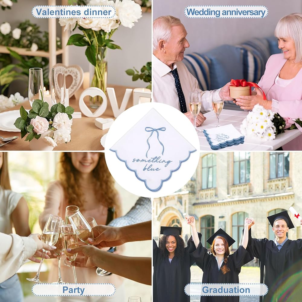 Appropriate Size: these something blue handkerchiefs gifts are wedding registry must haves, which measure about 12 inches / 30 cm in square, symbolizing cherished memories on wedding day; Easy to store and carry around, our happy tears handkerchiefs gifts can be folded up and put in pockets or cross bags, you can store when not in use, does not take up too much space