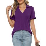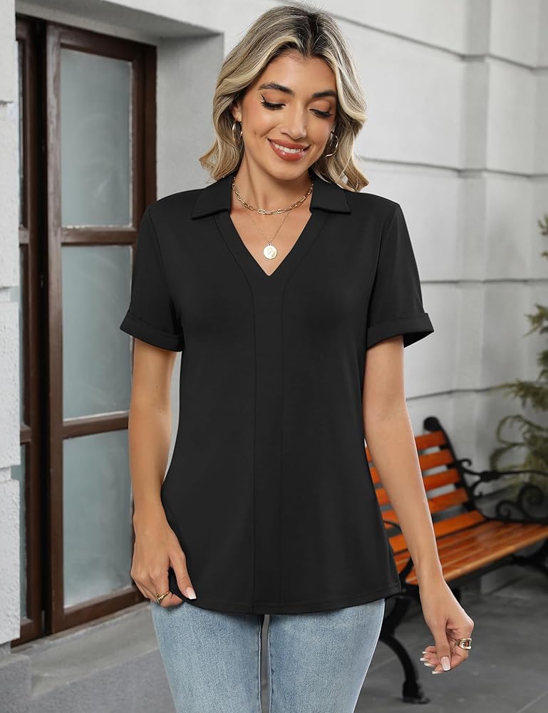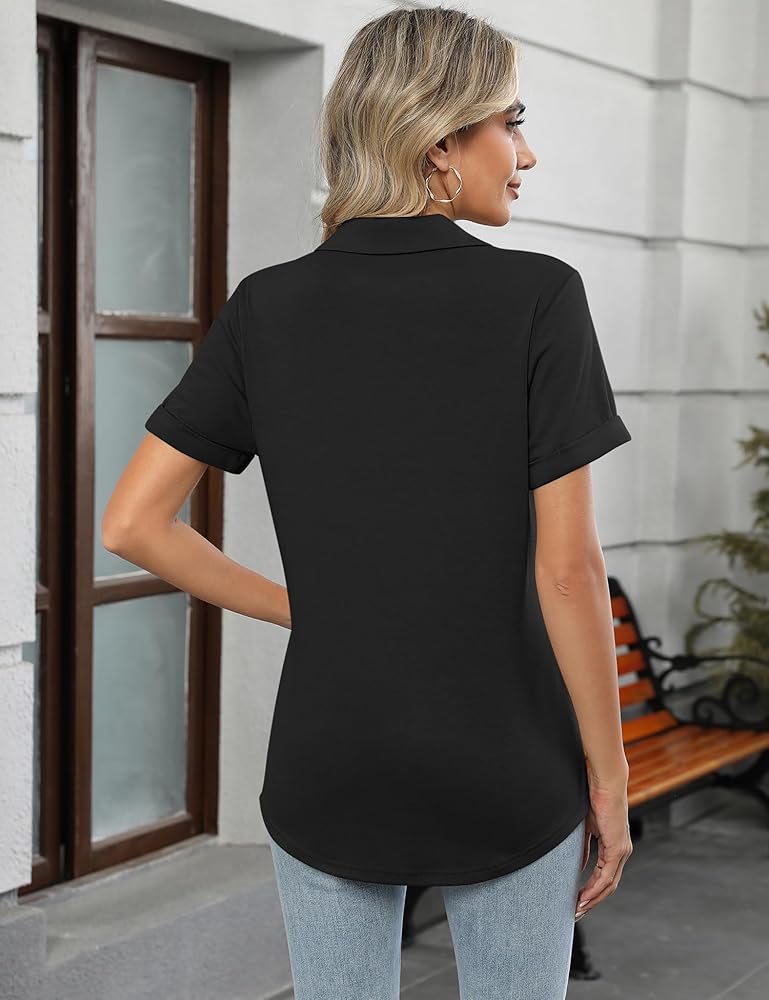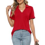 Design: The women's polo shirt features a notched V-neck design that can modify your neck line well, the natural curved hem design perfectly covers your abdomen and hips, and the classic lapel adds a touch of elegance, making it a great blend of casual and stylish.