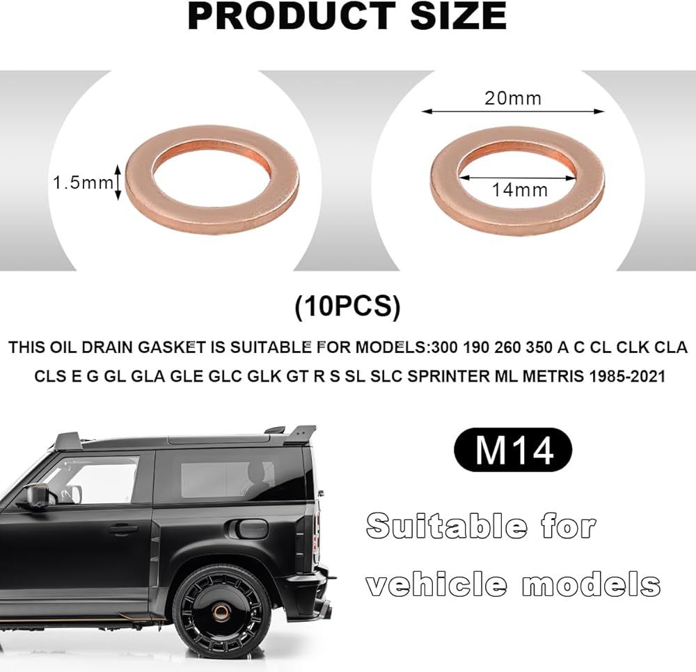 【Wide Application】: With OEM number 007603-014106, this copper oil drain plug gasket is suitable for a wide range of applications. It is commonly used for electrical connections and pipe sealing in a variety of settings, including household appliances, automobiles, boats, and hydraulic systems.