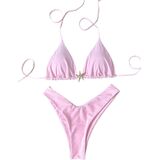 Features: 2 piece bikini set for women, classic triangle cups with halter neck, self-tie straps for adjustable fit, string bikini swimsuit, starfish metal decor, padded, wireless